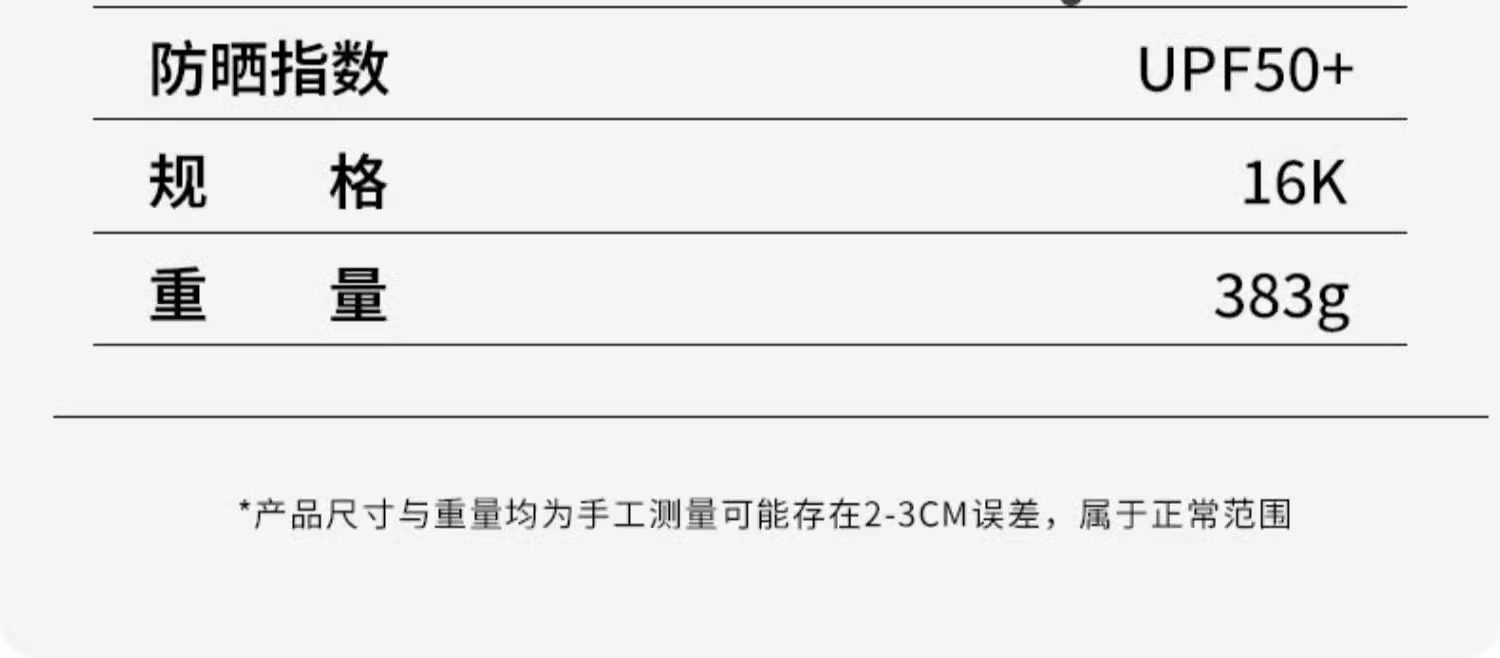 | UV Sun Protection Index | UPF greater than 50 |