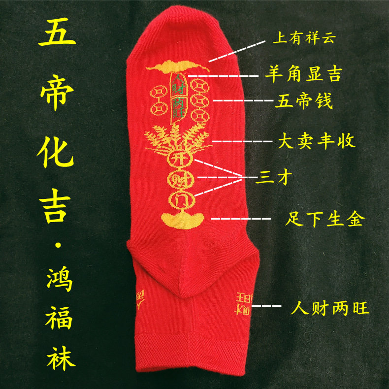 | Style | Five emperors copper coin red socks men's and women's cotton socks go to good luck, antibacterial deodorizing filter socks, festive zodiac popular dropshipping |