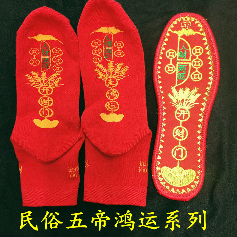 Five Emperors copper coins red insole men and women walking Hongyun animal year antibacterial deodorant Zodiac pedal seven star one suit generation hair
