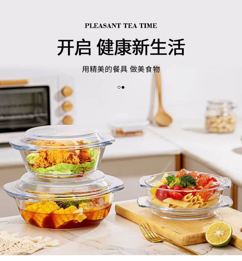 Glass bowl with lid special ware plate for microwave oven heating high temperature resistant household basin large soup bowl Egg Soup Steamed Egg Bowl