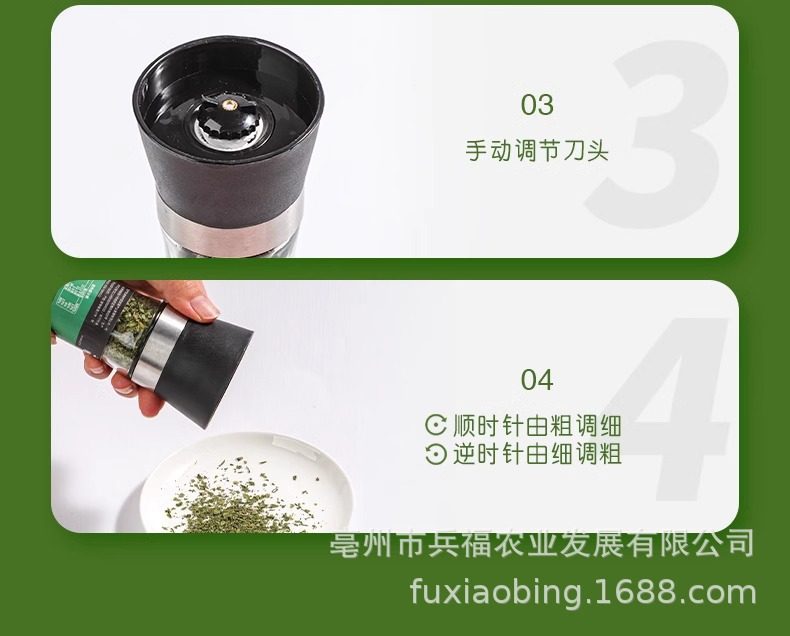 Specifications Parsley grinding bottle 26g,Rosemary grinding bottle 38g,Thyme grinding bottle 34g,Parsley 20g,Basil 25g,Sea salt black pepper 160g (5:5),Pure black pepper 108g,Parsley garlic salt grinding bottle 140g,Crushed sea salt and black pepper 160g