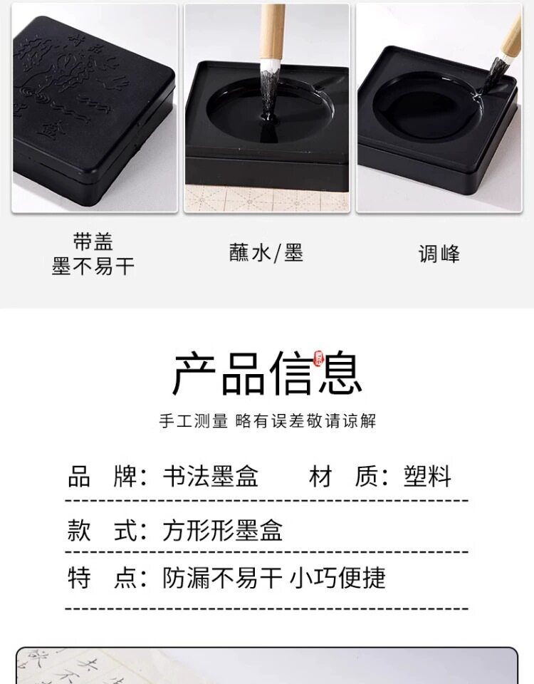 Square plastic ink cartridge traditional Chinese painting beginner small chopsticks table drop-resistant dry-proof ink dish portable ink pool