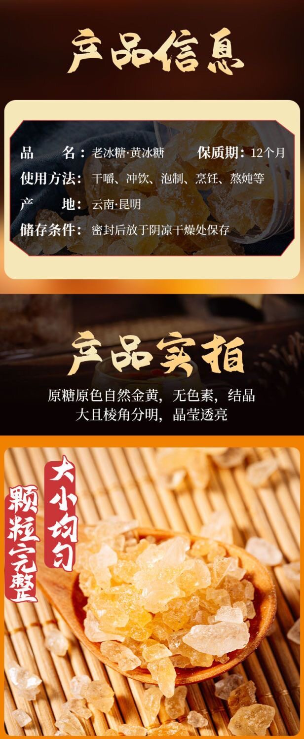 Yunnan authentic yellow rock sugar handmade sugar cane rock sugar canned large broken small particles household sugar old rock sugar full box