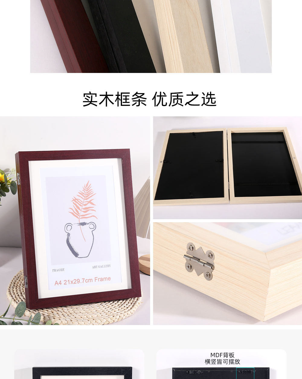 | Inner frame size | White 22 * 29.7CM,Original wood grain 22 * 29.7CM,Rosewood 22 * 29.7CM,Black 22 * 29.7CM |