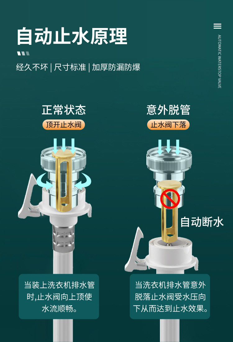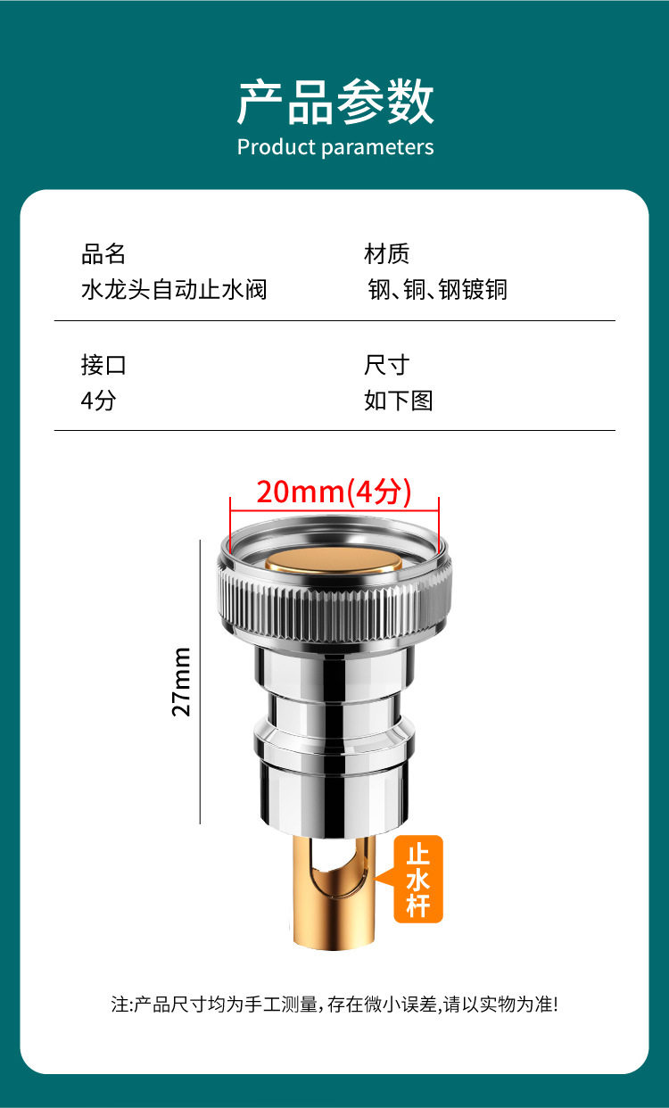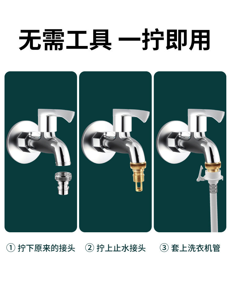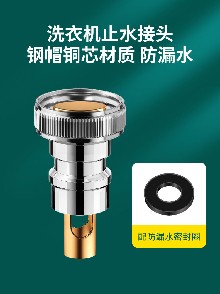 Washing machine faucet automatic water stop valve to prevent falling off water nozzle adapter copper Special household 4 points accessories
