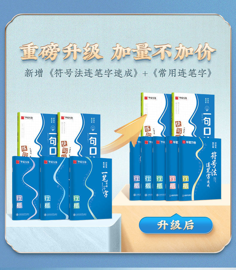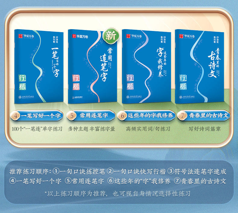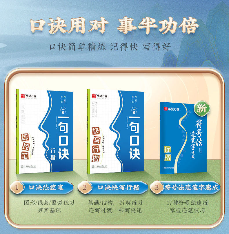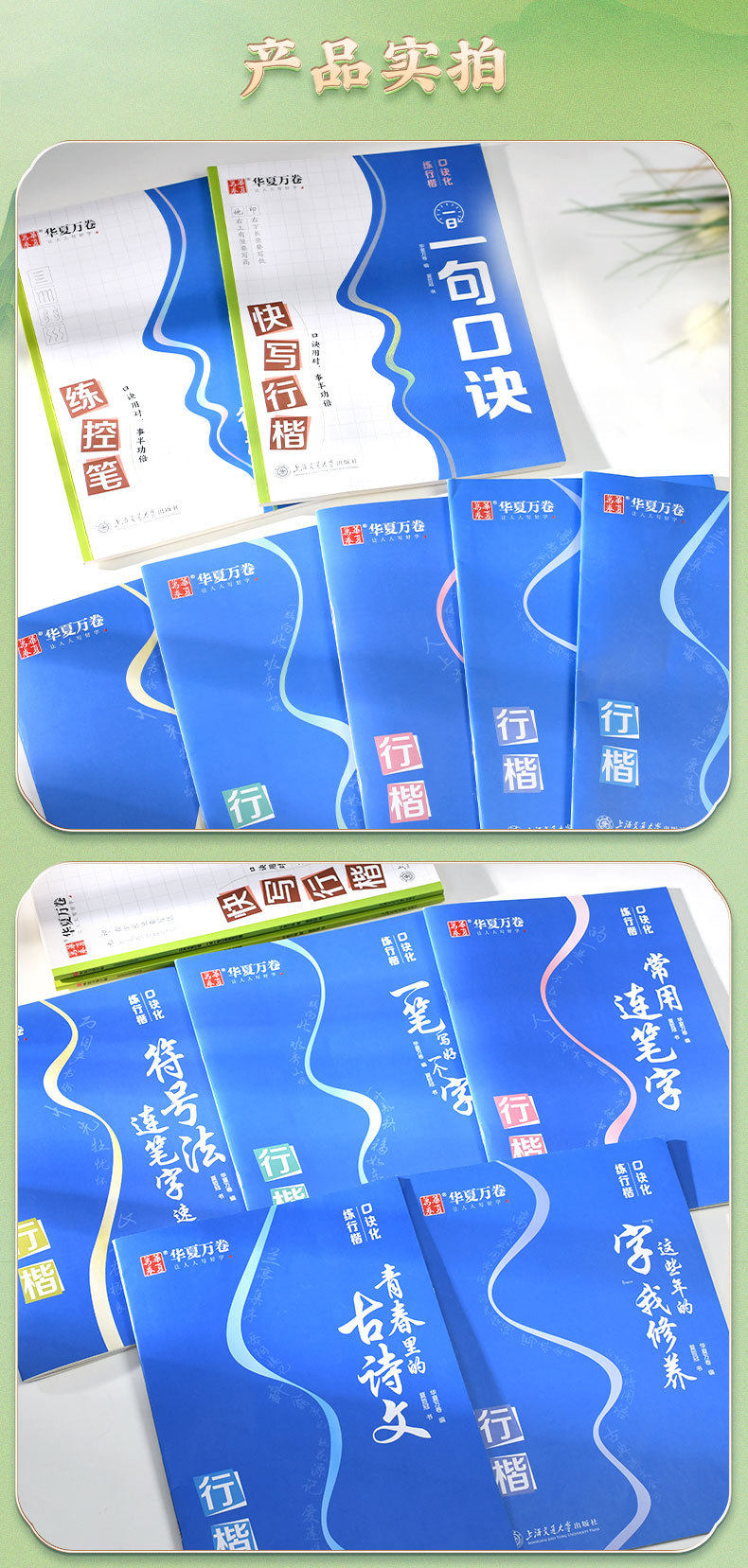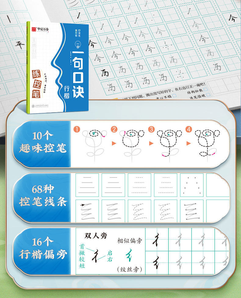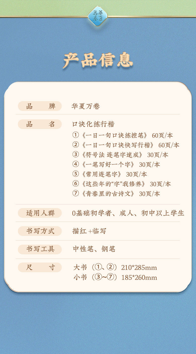 | Specifications | Formula-based regular script upgrade full set [7 copies]],Formula-based regular script intensive exercise [5 books]],Write regular script +3 booklets [4 books]],5 booklets [5 booklets]],3 booklets [3 booklets]],Practice and control Pen + write a word in one stroke [2 books]] |
