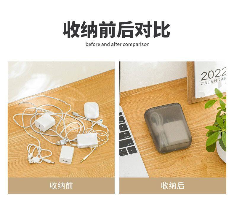 Portable data cable storage box winding earphone cable charger storage box with lid drawer organizing box
