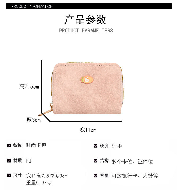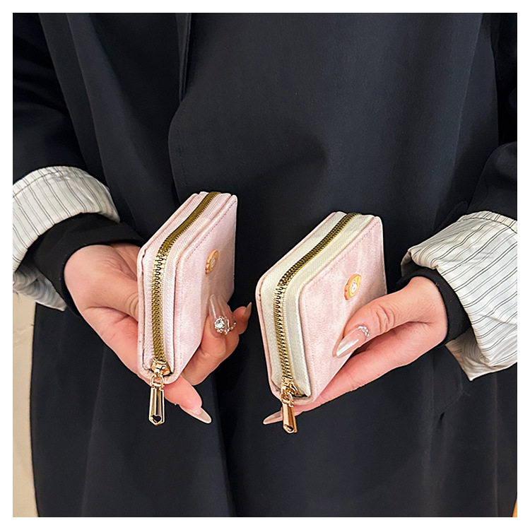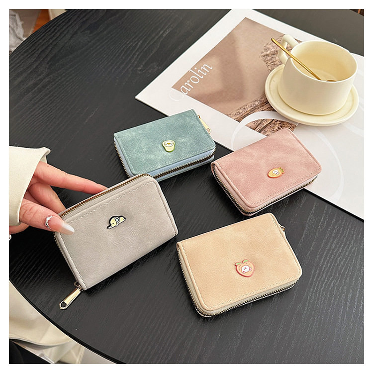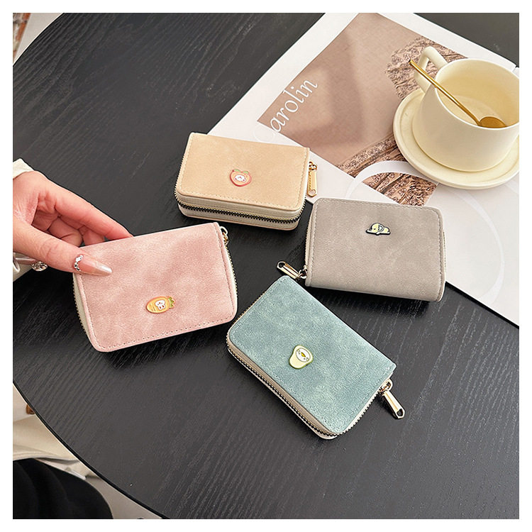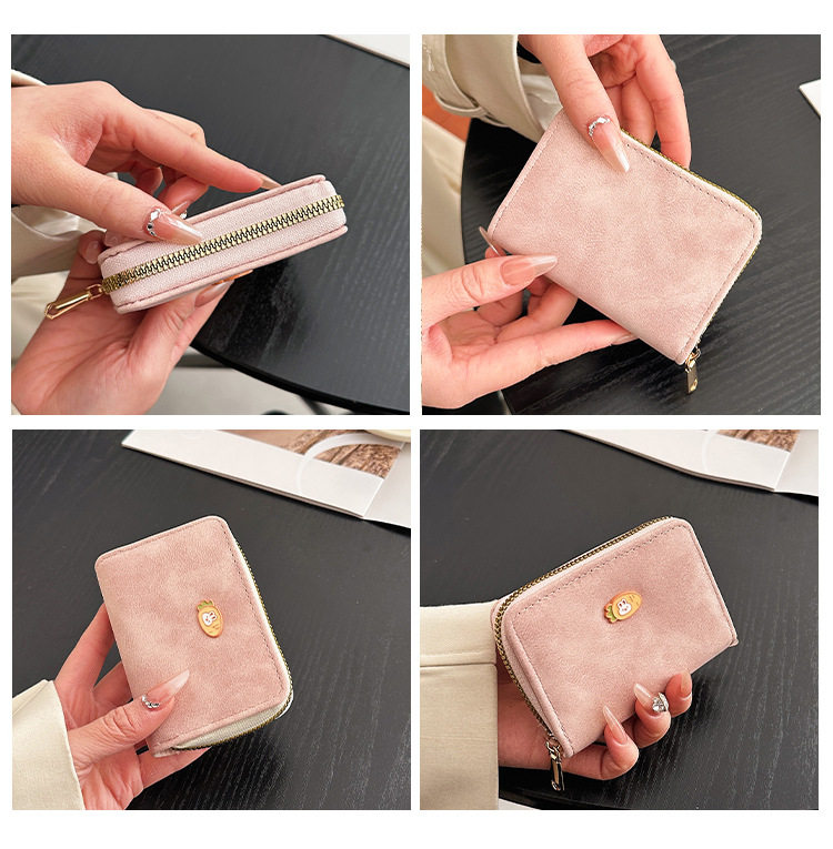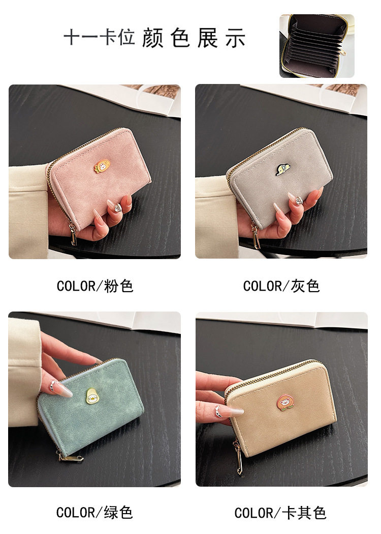 Cute zipper card holder Women's Small New Frosted id bag multi-card large capacity Student women's card holder wallet