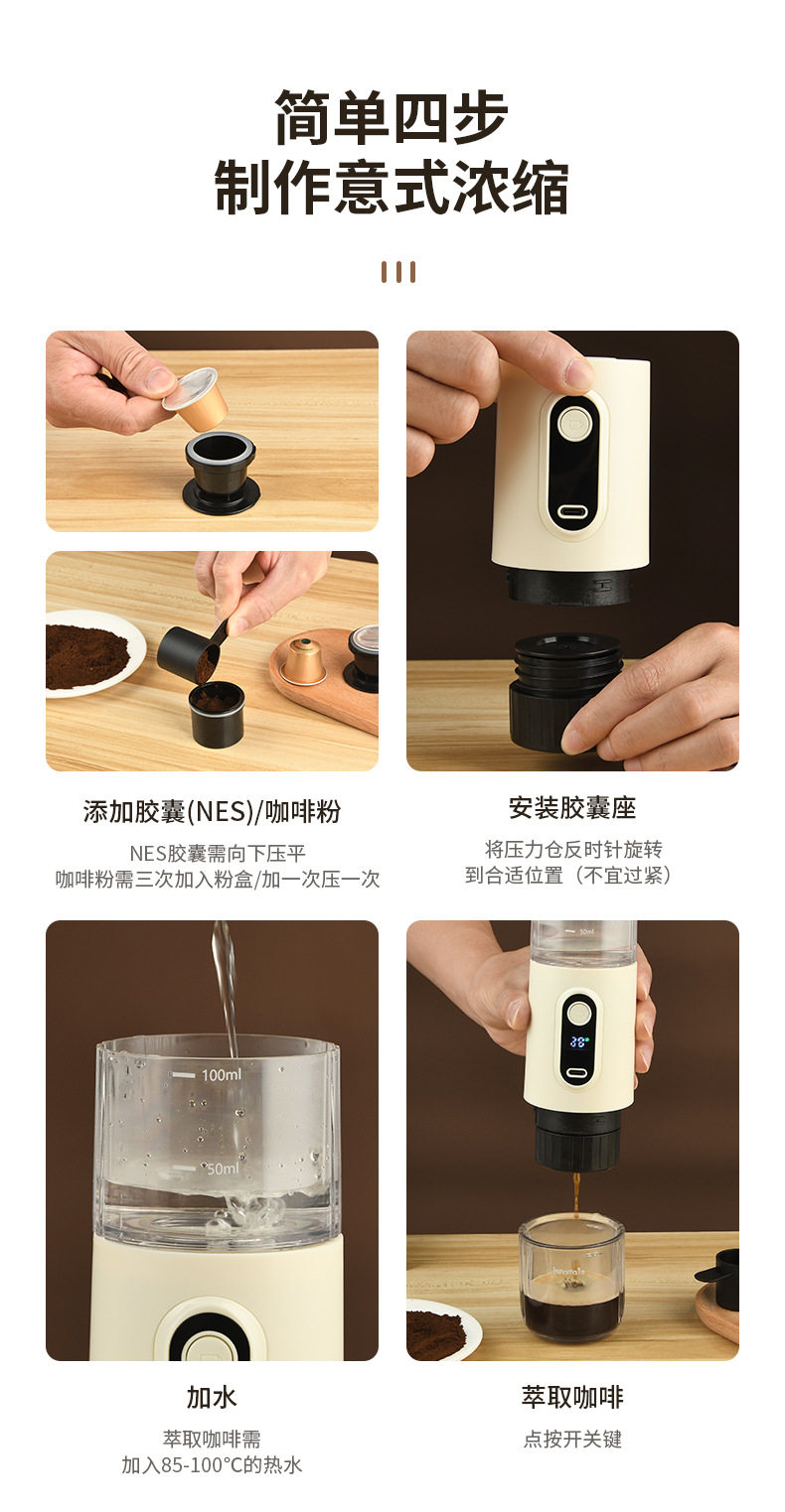 Wireless Portable Italian coffee machine electric Italian concentrated capsule small portable coffee machine outdoor car home