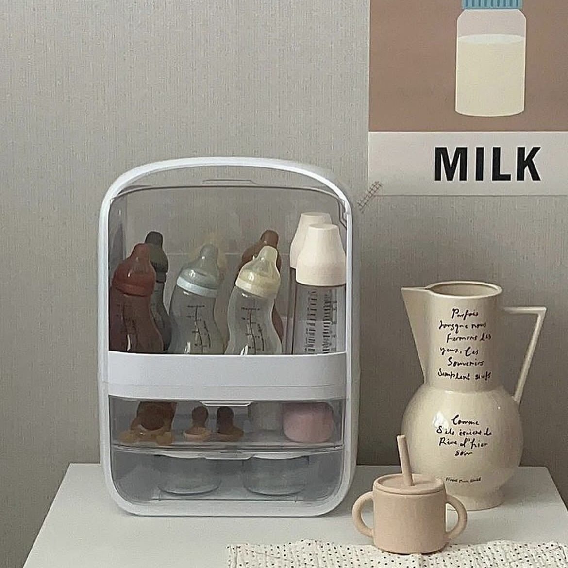 ins baby bottle storage box household multi-layer large capacity bottle display rack with lid dustproof household storage rack