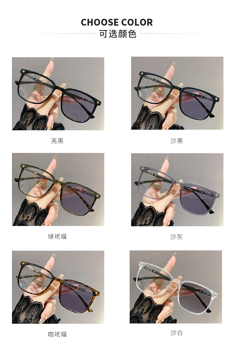 Anti-blue light discoloration glasses for female students online popular large frame cross-border myopia with degree tide without makeup glasses for men