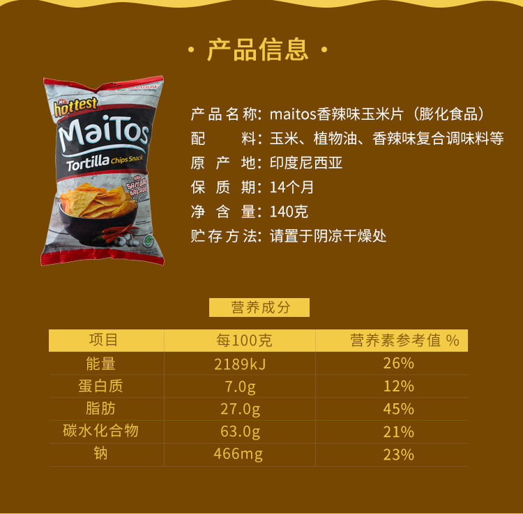 Indonesia imported Maitos big bag corn chips puffed food potato chips casual snack gift bag full box wholesale Internet celebrity