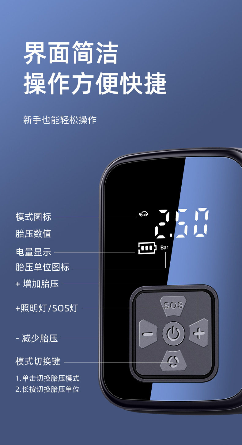 Car air pump mini portable electric car air pump car small wireless digital display tire air pump