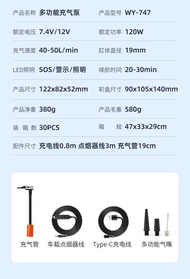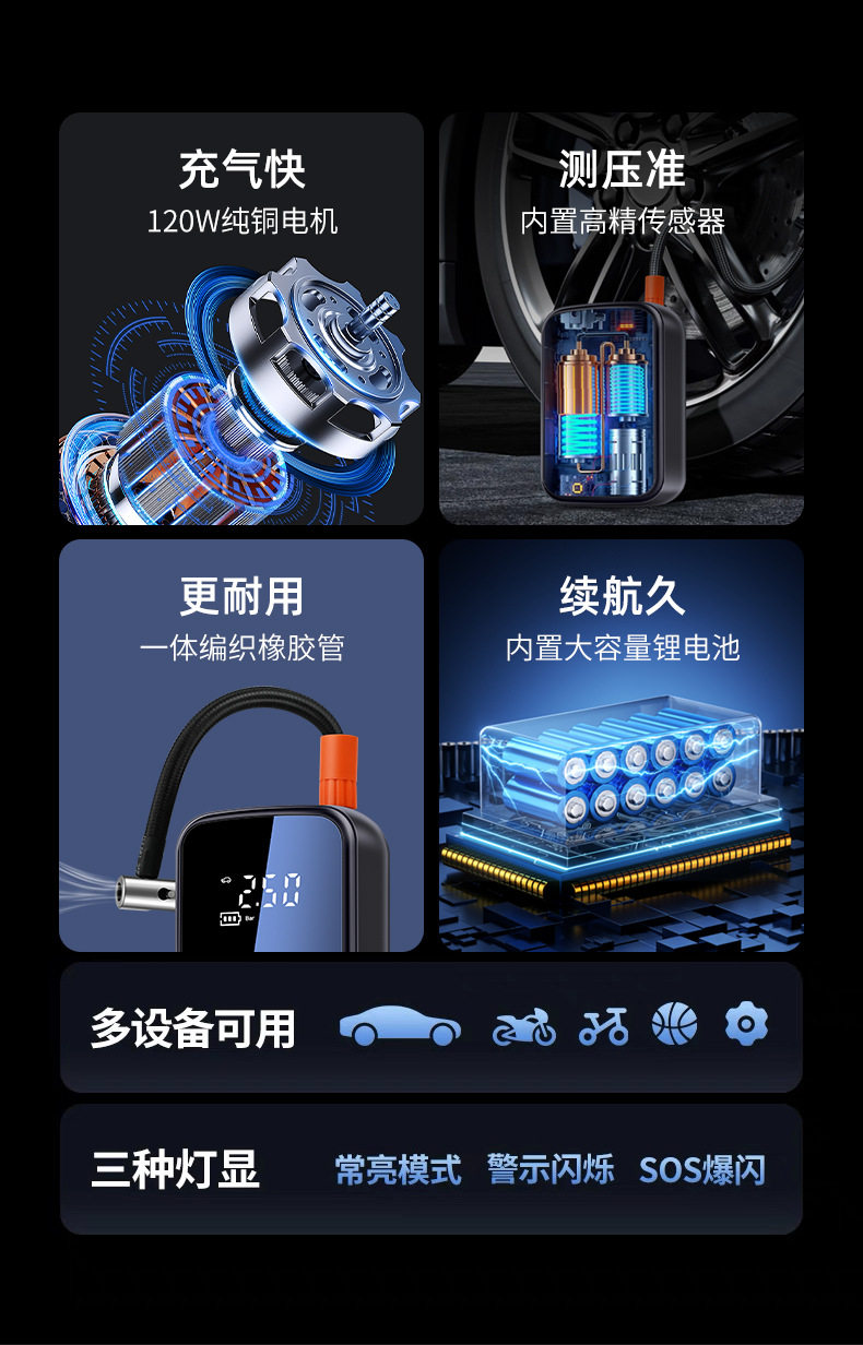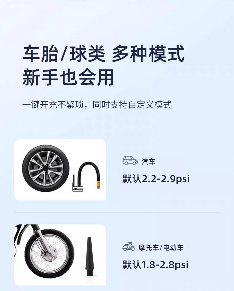 | Additional features | Lighting,Tire pressure gauge,Warning light,USB charging |