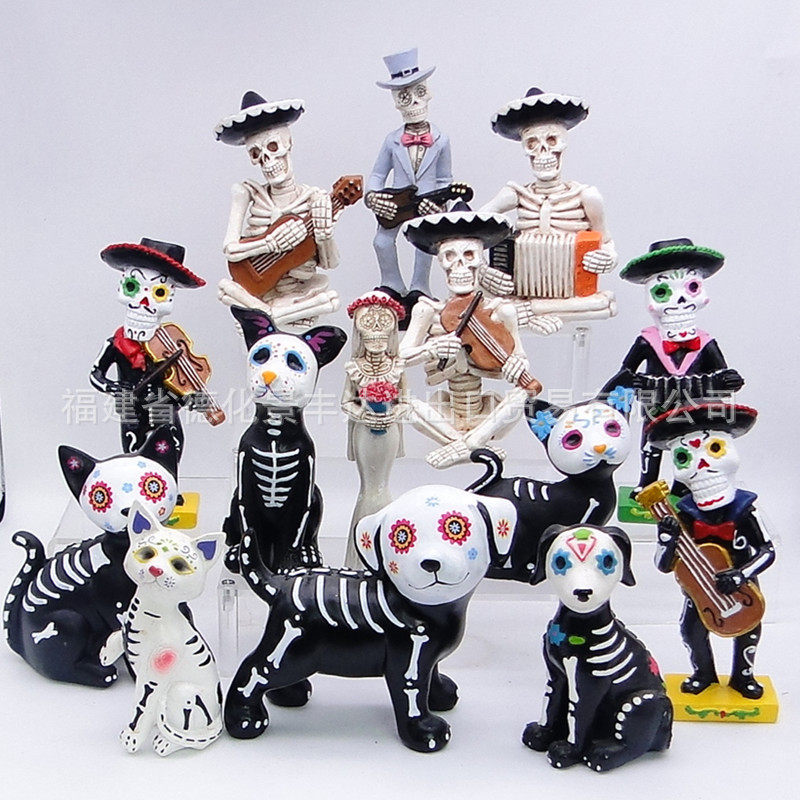 Cross-Border Direct Sales Halloween Resin Crafts Halloween Decorations Cute Little Flowers Cat and Dog Ornaments Death Festival Gifts