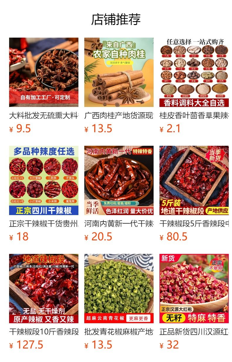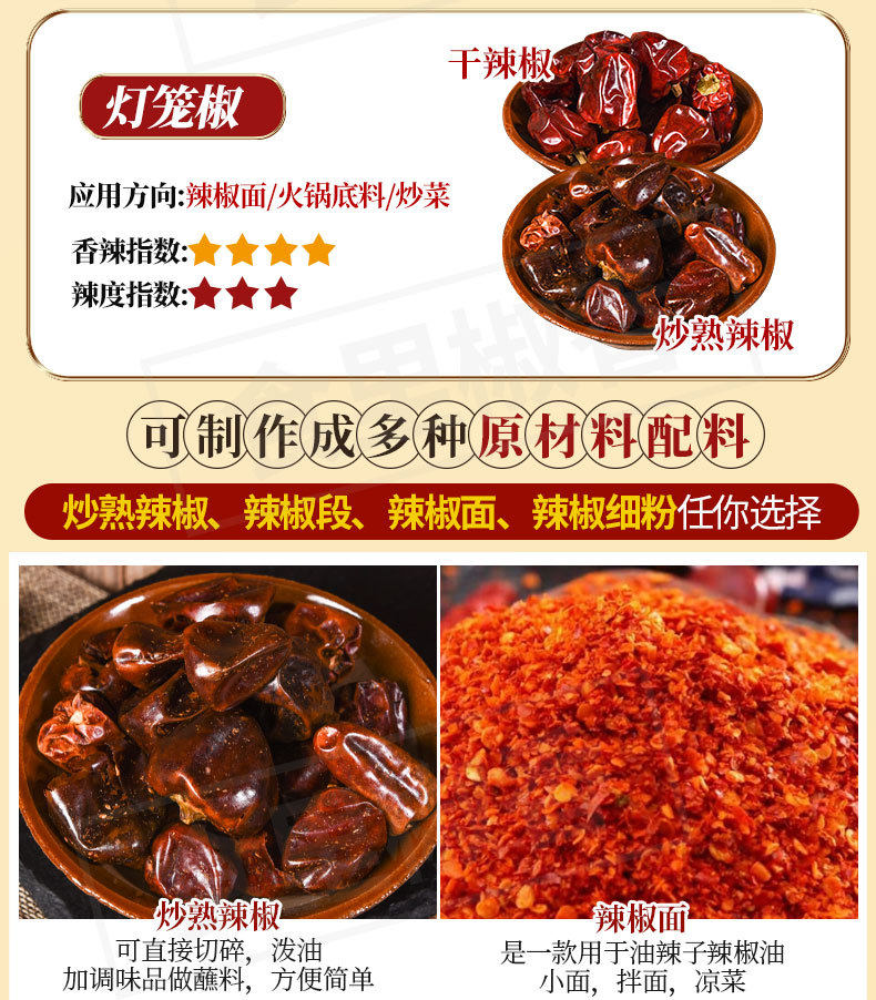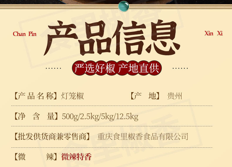 | Packaging specifications | 【pack of 0.5kg】high-quality guizhou bell pepper - slightly spicy and fragrant,【pack of 2.5kg】high-quality guizhou bell pepper - slightly spicy and fragrant,【pack of 5kg】high-quality guizhou bell pepper - slightly spicy and fragrant,【 12.5kg vacuum pack】high-quality guizhou bell pepper - slightly spicy and fragrant,[medium thick 0.5kg pack] premium guizhou lantern chili noodles - slightly spicy and extra fragrant,[medium thick 2.5kg pack] premium guizhou lantern chili noodles - slightly spicy and extra fragrant,[medium thick 5kg pack] premium guizhou lantern chili noodles - slightly spicy and extra fragrant,[medium thick 15kg vacuum pack] premium guizhou lantern chili noodles - slightly spicy and extra fragrant,[fine powder 0.5kg pack] premium guizhou lantern chili powder - slightly spicy and fragrant,[fine powder 2.5kg pack] premium guizhou lantern chili powder - slightly spicy and fragrant,[fine powder 5kg pack] premium guizhou lantern chili powder - slightly spicy and fragrant,[fine powder 12.5kg vacuum packed] premium guizhou lantern chili powder - slightly spicy and fragrant,【pack of 0.5kg】high-quality guizhou lantern fried chili - slightly spicy and fragrant,【pack of 2.5kg】high-quality guizhou lantern fried chili - slightly spicy and fragrant,【pack of 5kg】high-quality guizhou lantern fried chili - slightly spicy and fragrant,[12.5kg vacuum packed] premium guizhou lantern fried chili - slightly spicy and fragrant |