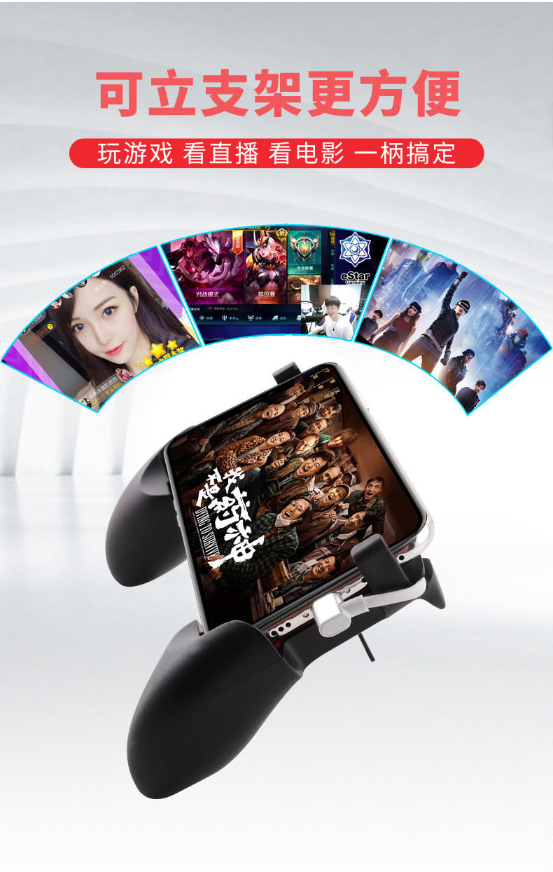 W10 Wholesale Mobile Game Controller Two-In-One Stretchable and Retractable Gaming Stand Grip for Mobile Games Wireless Control