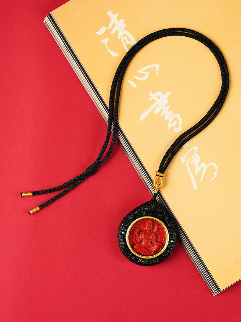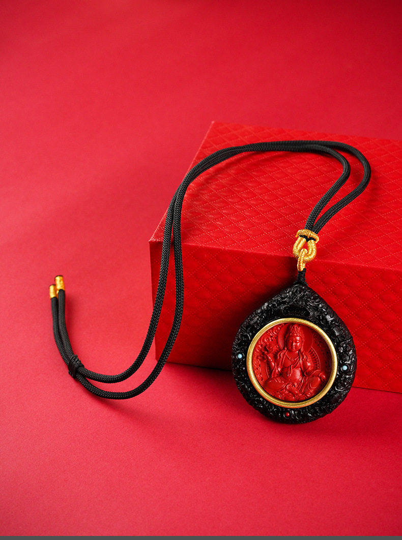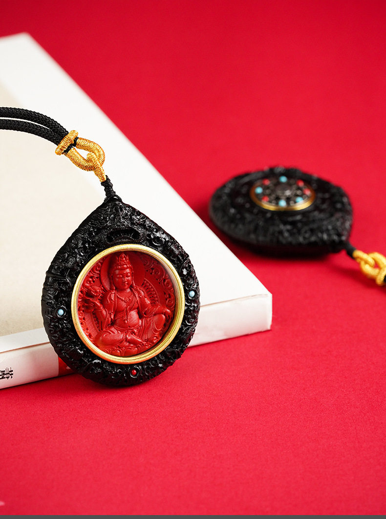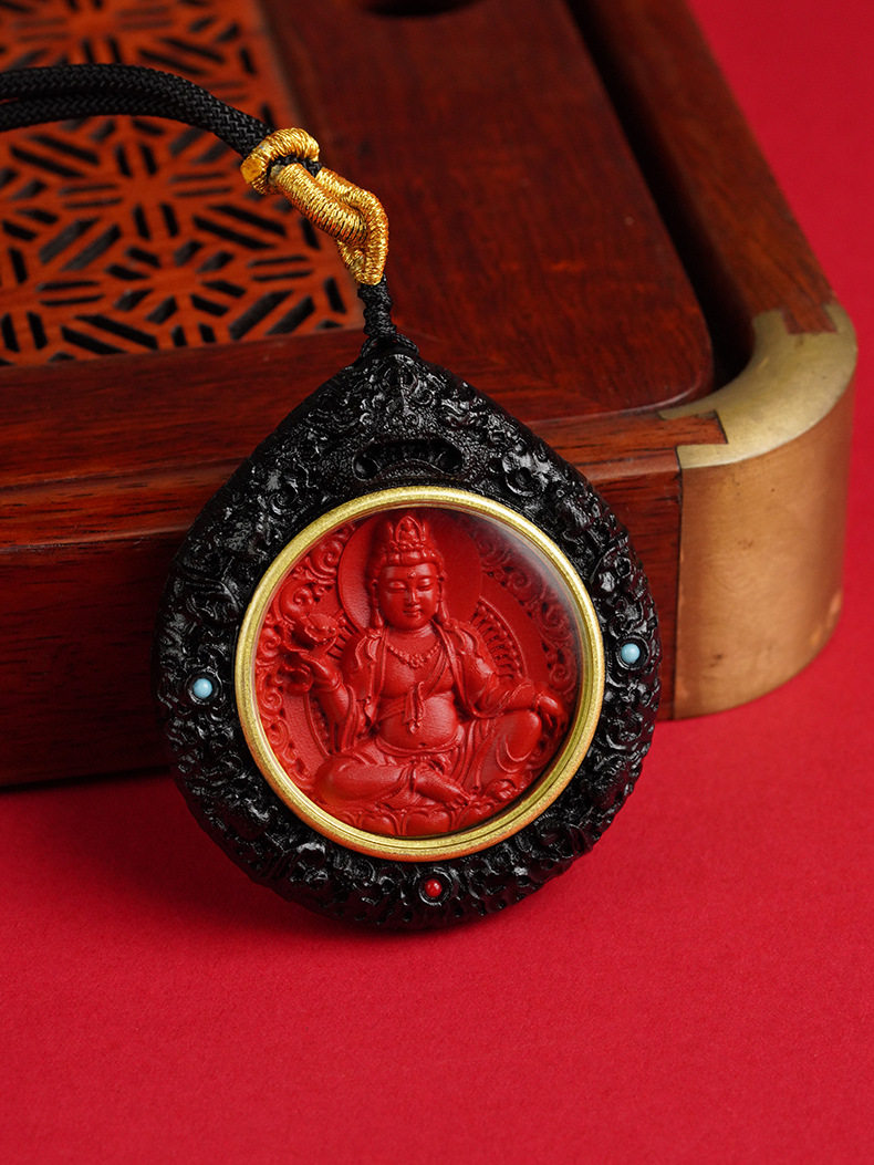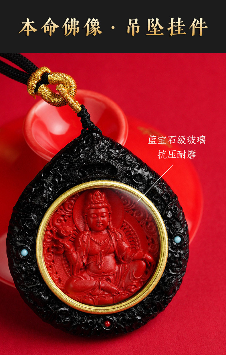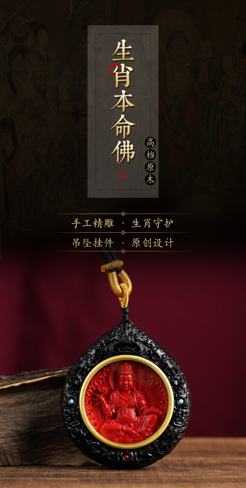 Cinnabar Birth Year Buddha Samantabhadra Bodhisattva Zodiac Pendant Birth Year Necklace Guardian Deity Ebony Pendant Jewelry