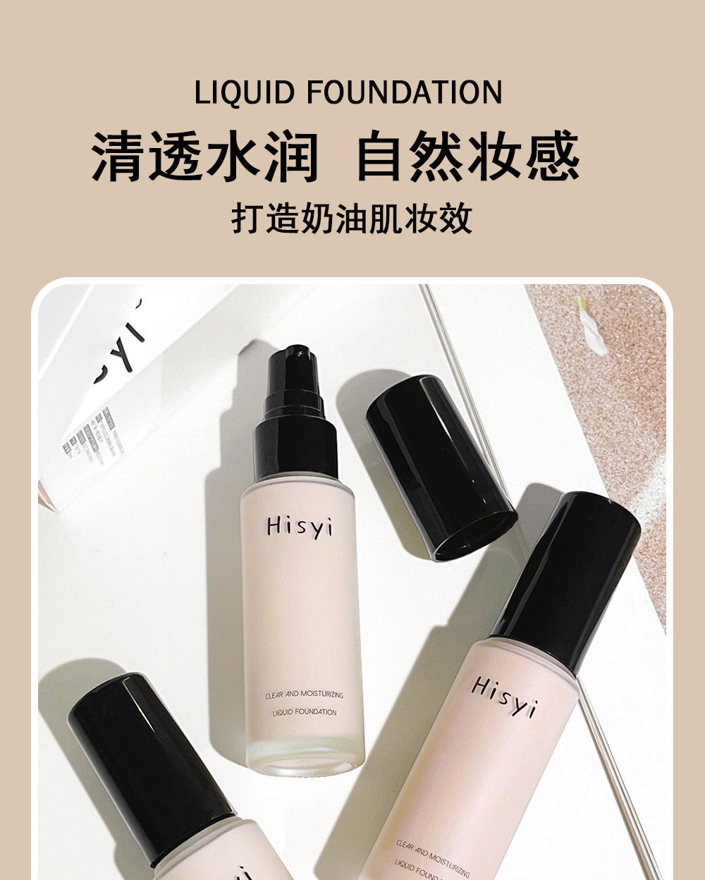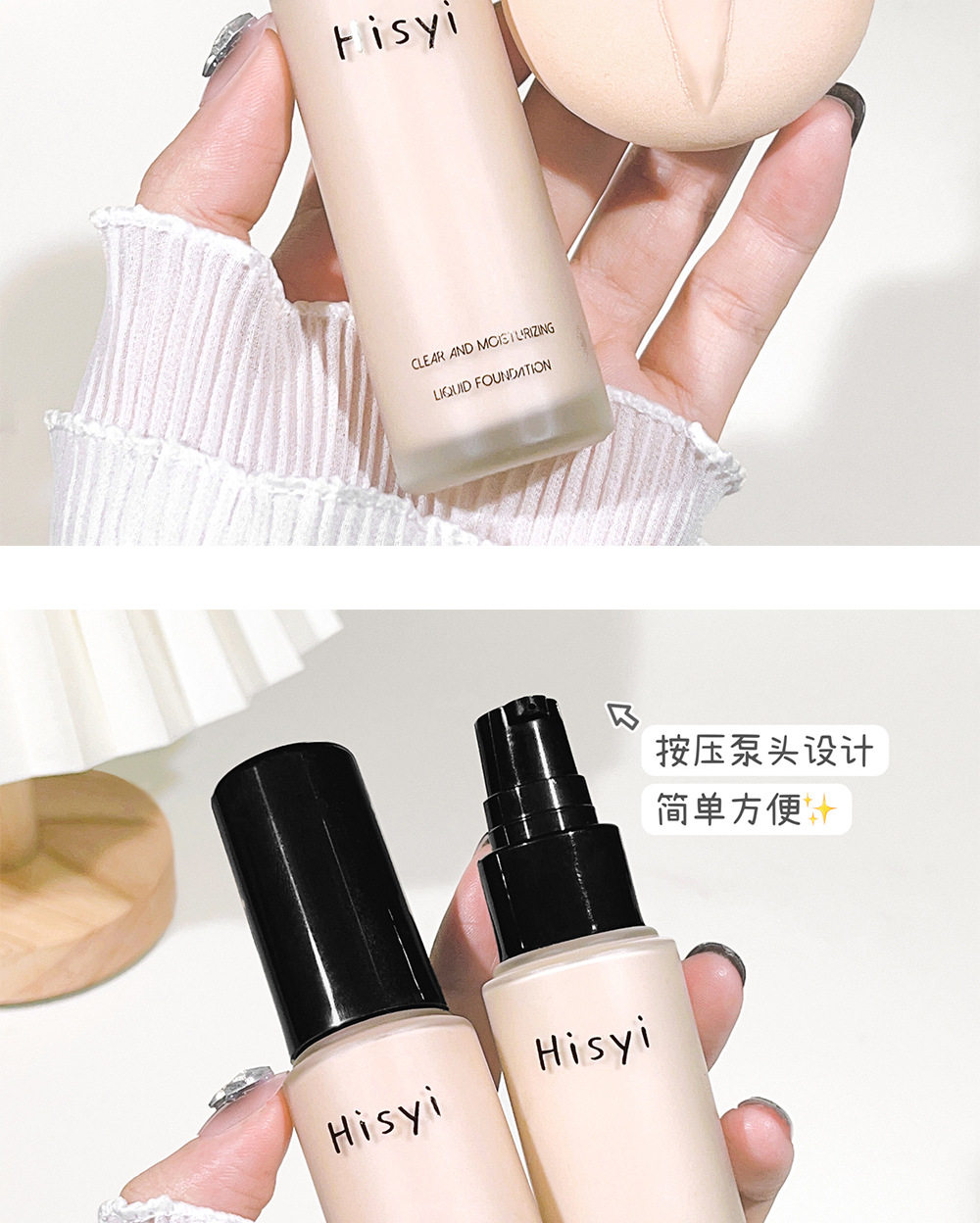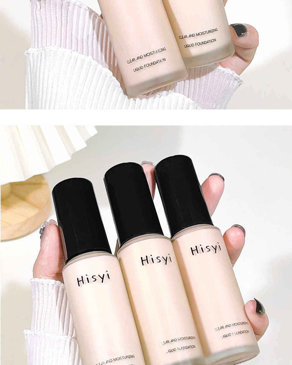 HISYI Clear and Moisturizing Foundation Liquid Not Sticking Powder Naturally Brightens Skin Color Lightweight Makeup Isolation BB Cream Makeup Front Milk