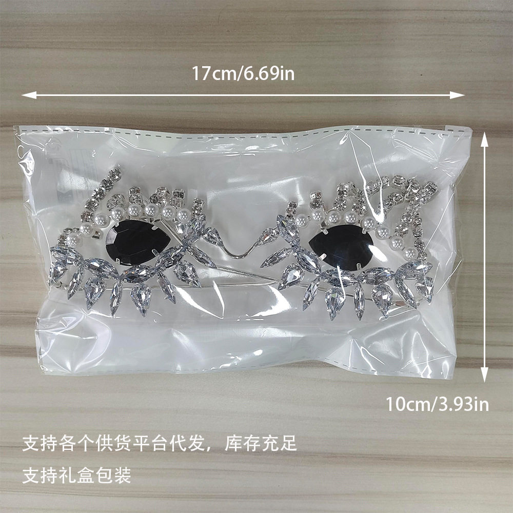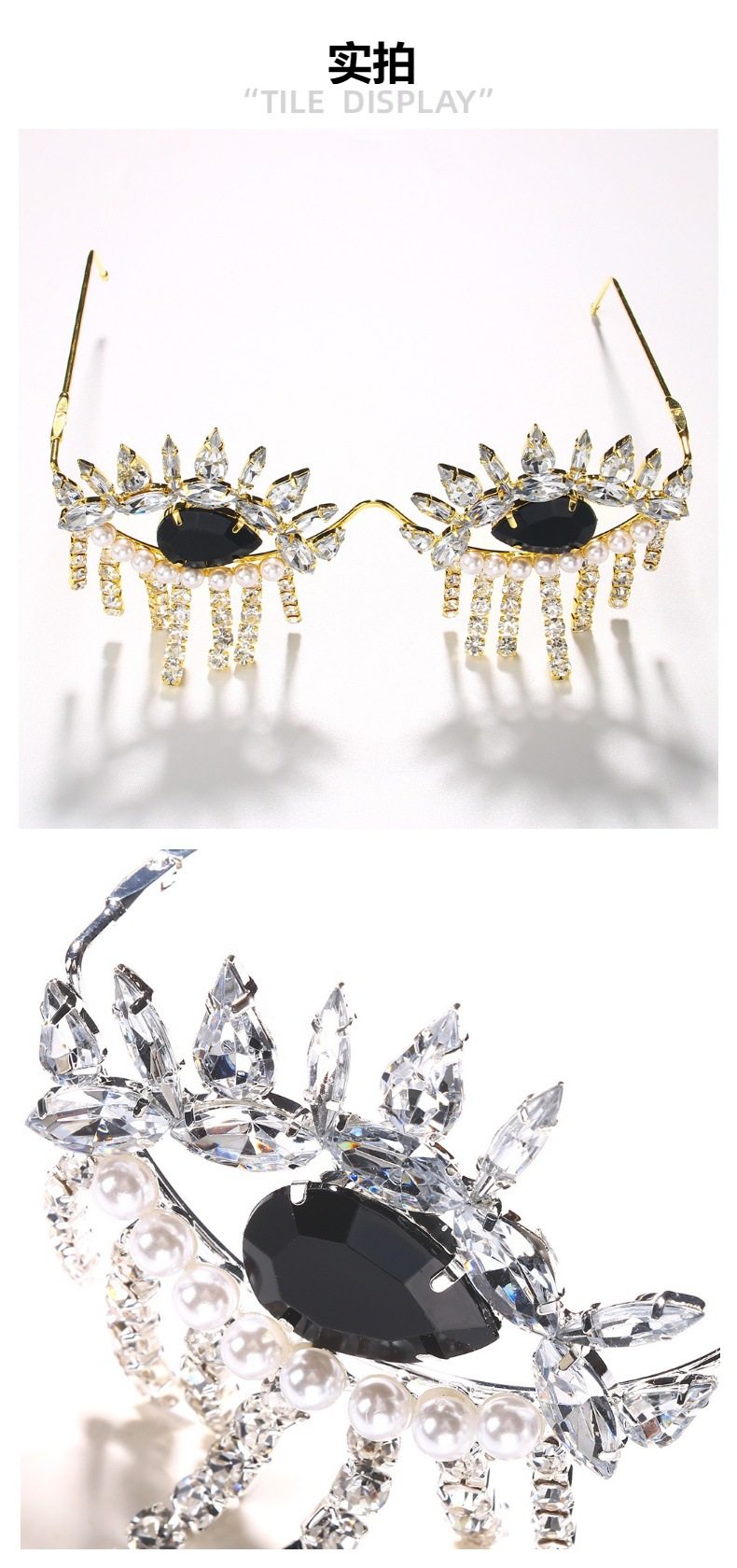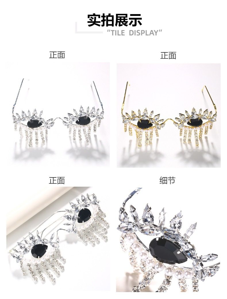 European and American black evil eye tassel glasses frame rhinestone sunglasses fashion lens-free novel street shooting accessories