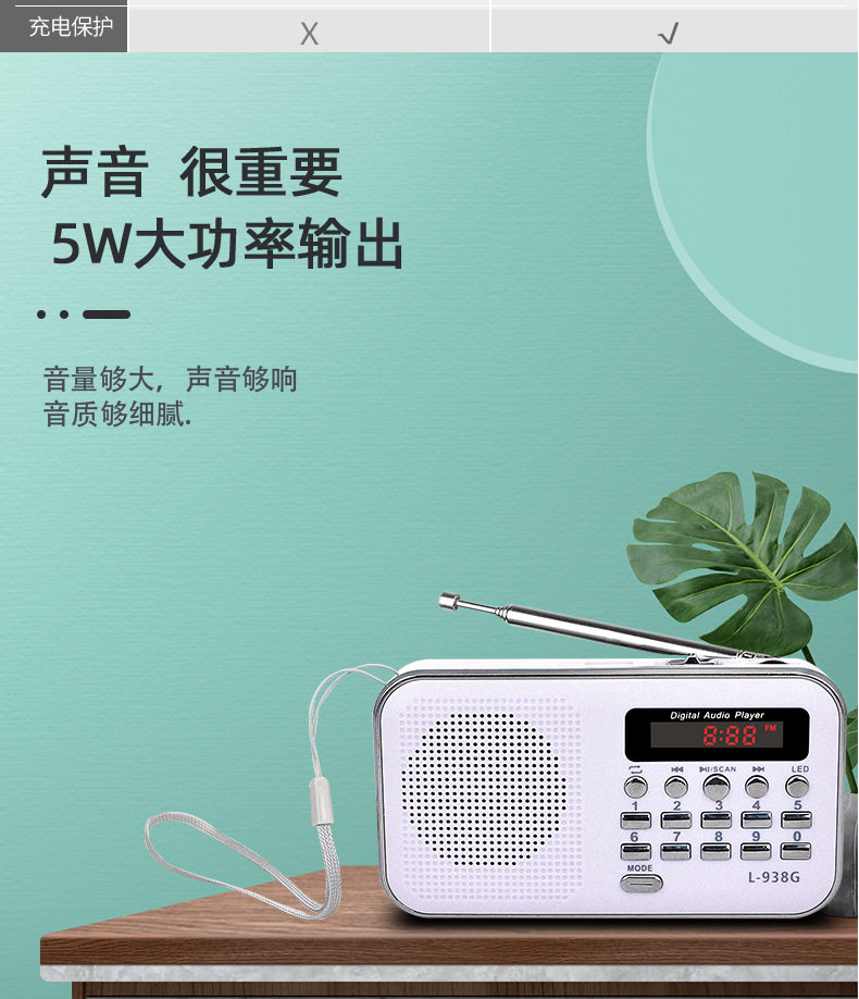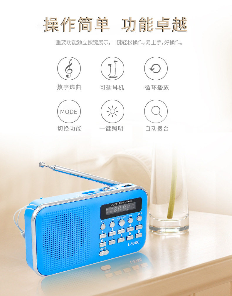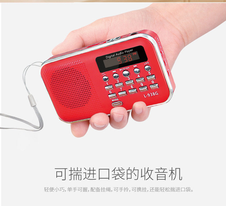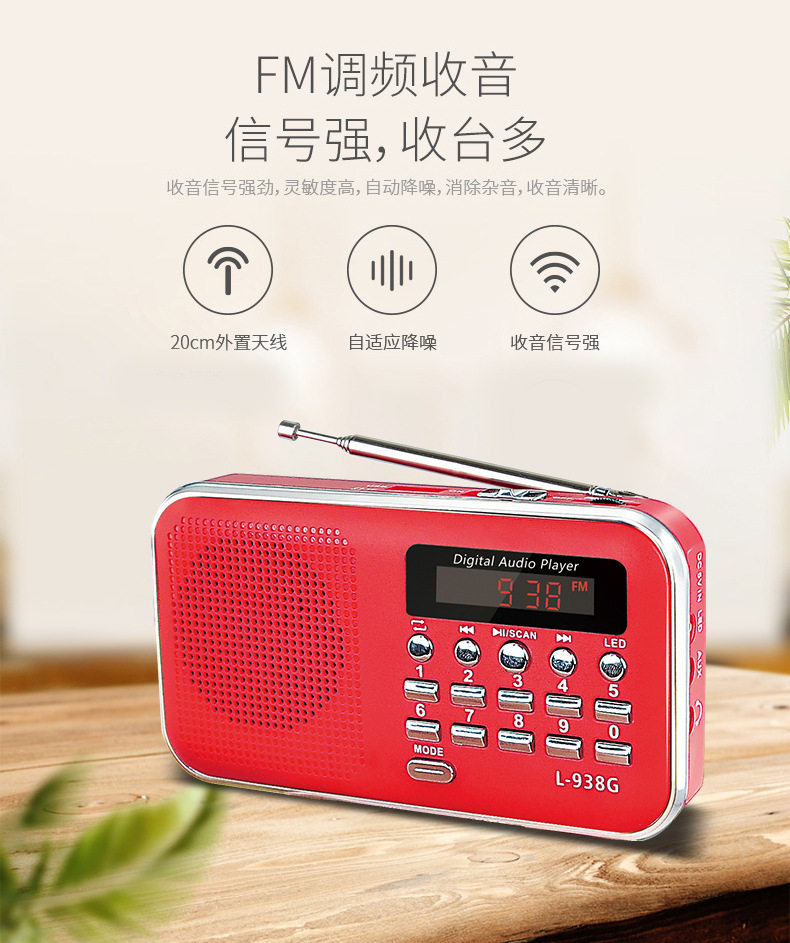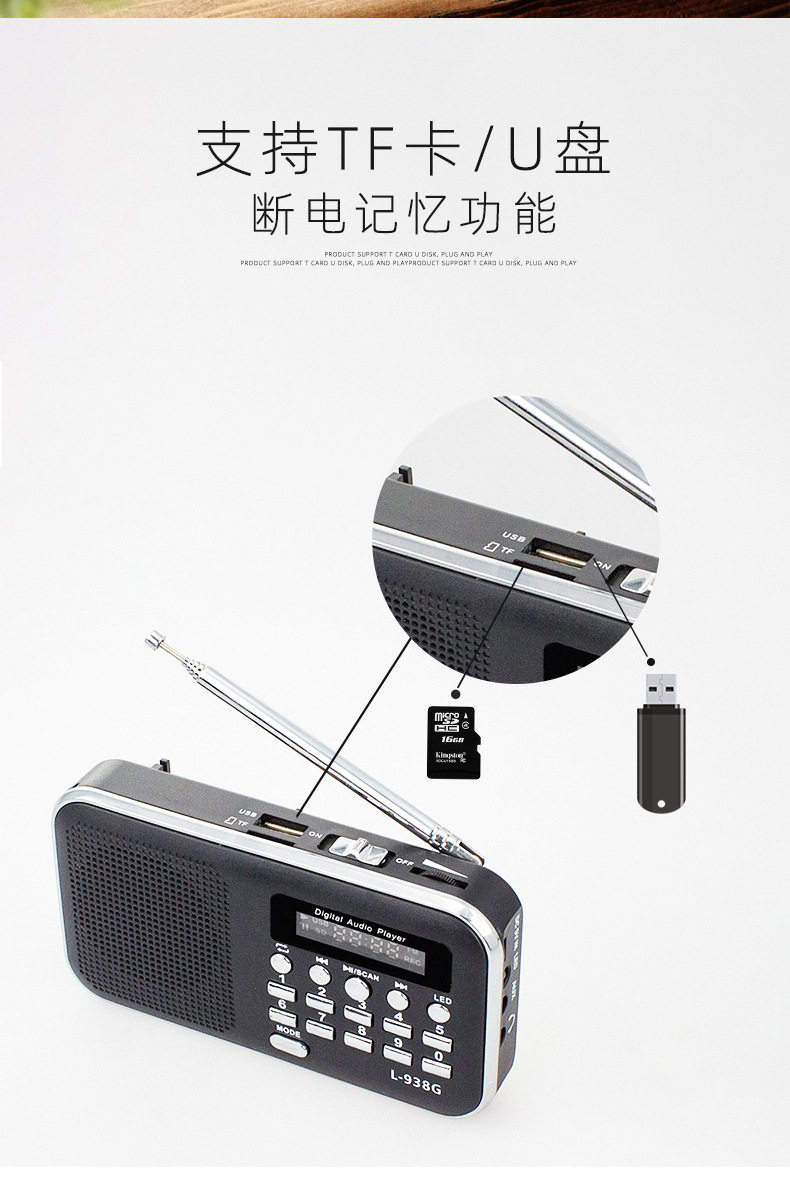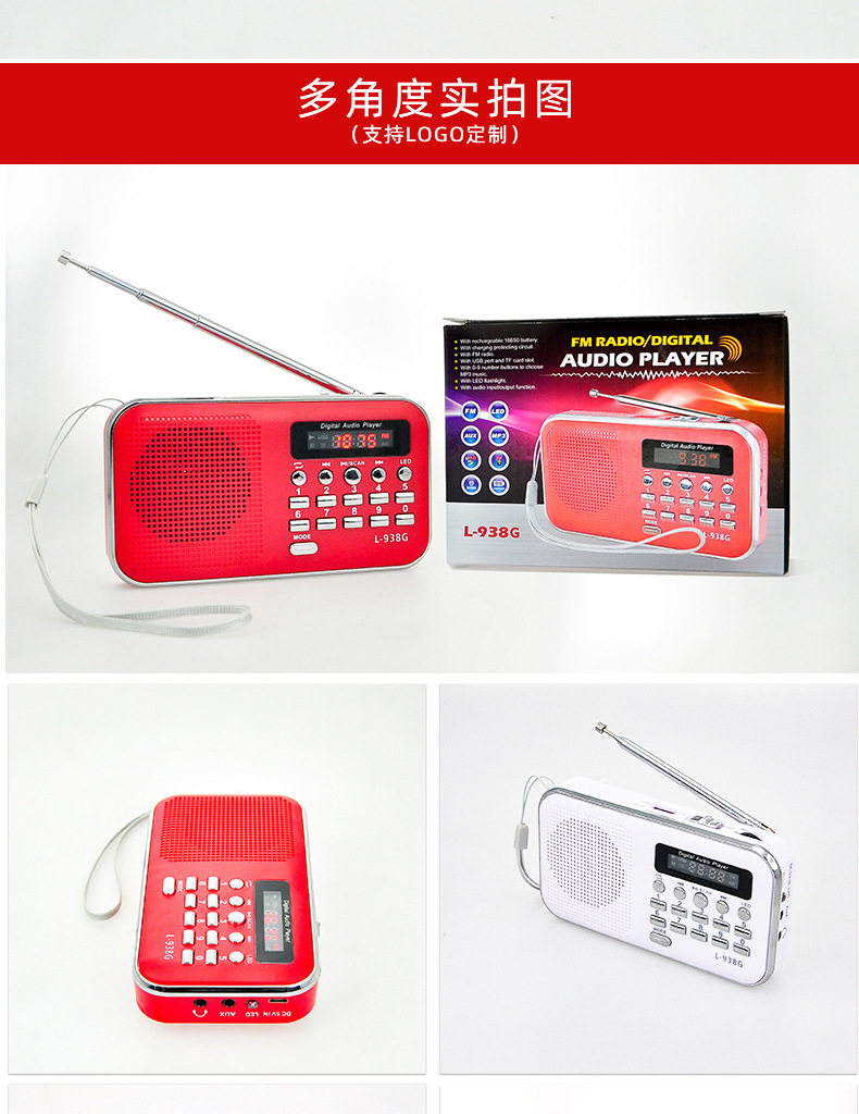 Card speaker L-938G Pocket FM radio for the elderly mini portable listening machine with flashlight