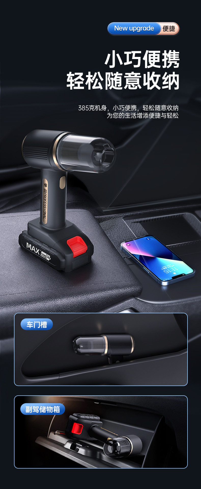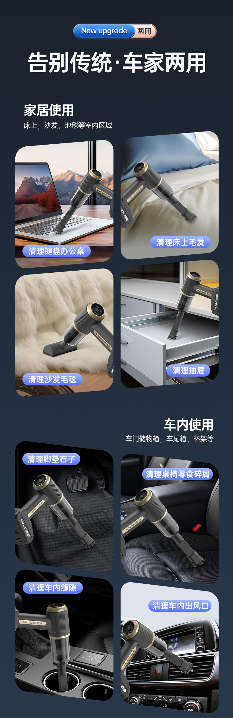 Car vacuum cleaner car household portable wireless charging handheld large suction brushless high power dust blowing cross-border