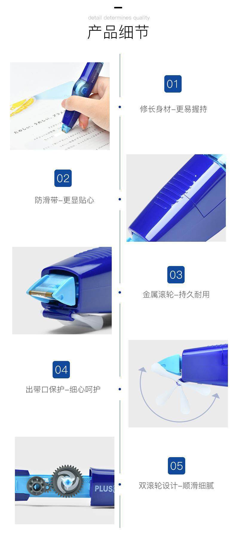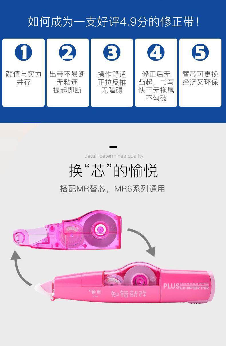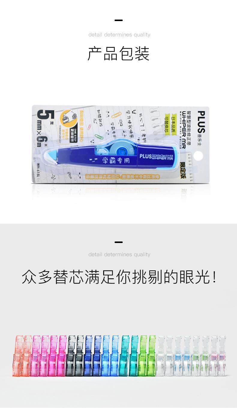 | Specification | 635 black body,635 blue,635 green,635 pink,635 light pink,624 light green,625 light pink,626 blue,626 pink,635 blue 1+3 suit,635 pink 1+3 suit,Mr correction tape body [light brown-48-307],Mr correction tape body [mint color-48-308],Mr correction tape body [pink-48-309],Wh-625pa transparent blue [c49-611],Plus wh-625pa correction tape light red transparent [c49-613],Plus wh-625pa correction tape purple transparent [c49-614],Plus wh-625pa correction tape yellow transparent [c49-612],【48-986】pink replacement core 3 pack,【48-985】blue replacement core 3 pack,【48-987】green replacement core 3 pack,【48-988】black replacement core 3 pack,【48-989】transparent refills 3 pieces/bag,Please order in multiples of 10 for a full box. [48-304] 635 refill - light pink / each,Please order in multiples of 10 for a full box. [48-301] 635 refill - deep pink / each,Please order in multiples of 10 for a full box. [48-302] 635 refill core, blue / each,Please order in multiples of 10 for a full box. [48-303] 635 refill core, green / each,Please order in multiples of 10 for a full box. [48-305] 635 refill black / each,Please order in multiples of 10 for a full box. [46-758] 625 refill - light pink / each,Please order in multiples of 10 for a full box. [46-762] 625nr transparent refill/each |