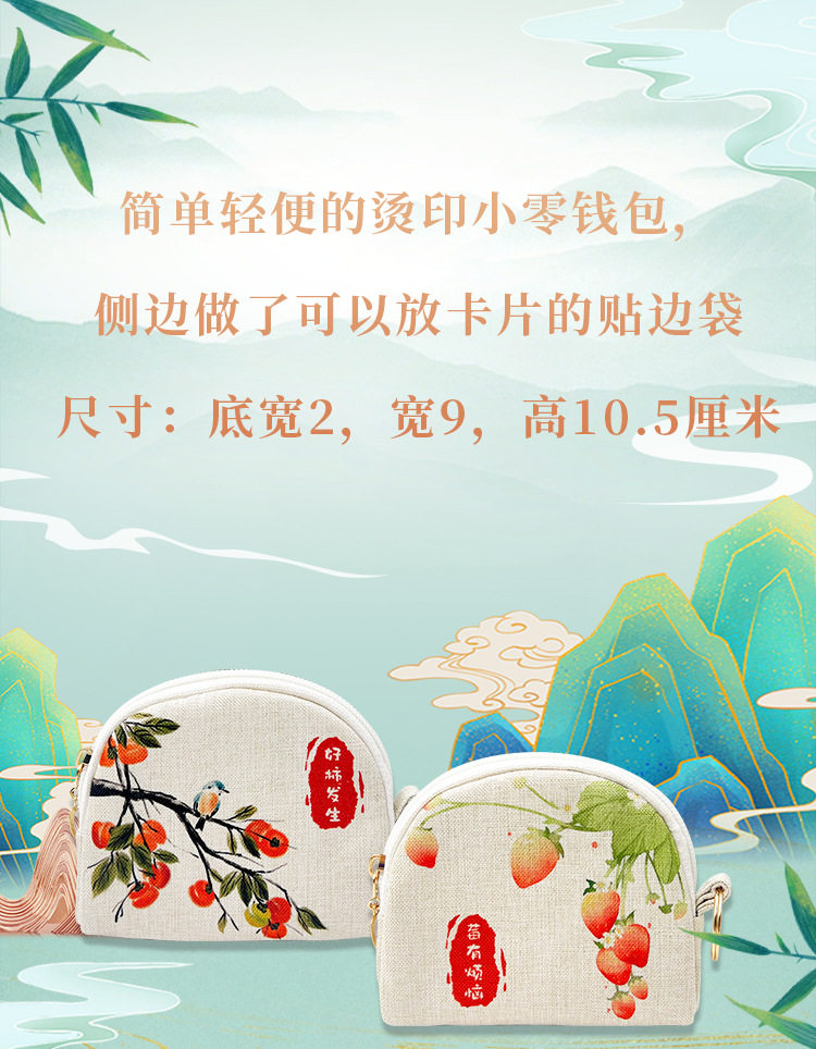 Digital Hot Stamping Zipper Coin Purse Shell Hand Cosmetics Bag Key Bag Small Bag Handmade Fabric Wallet Card Bag