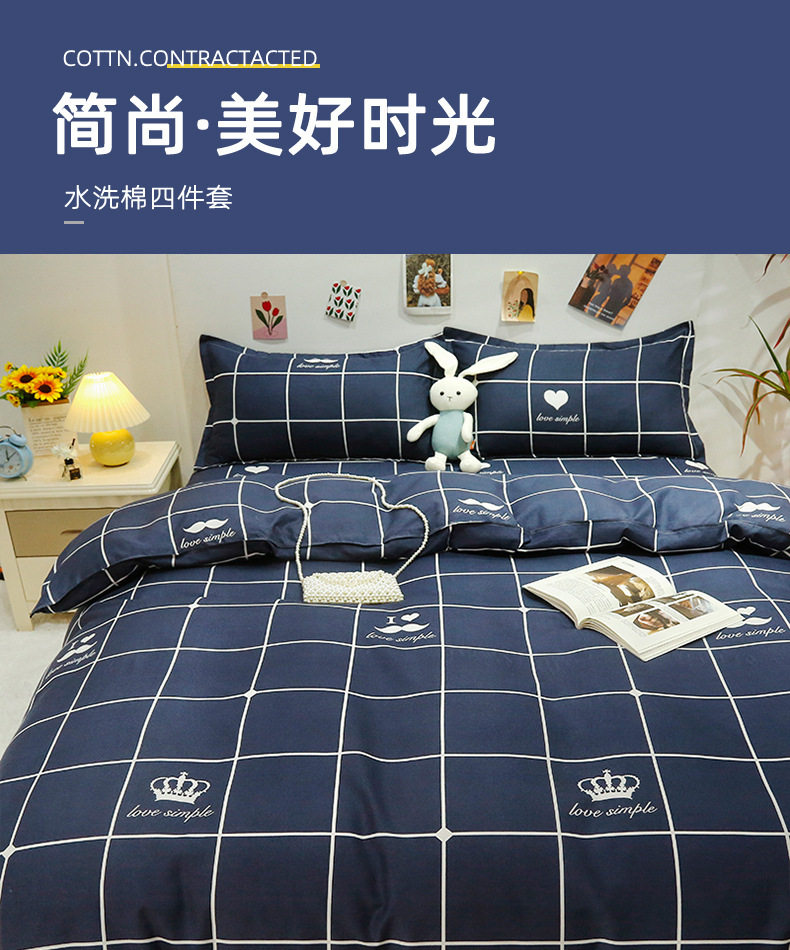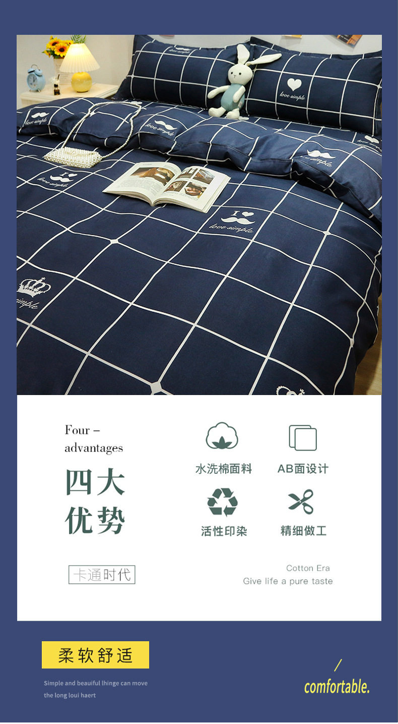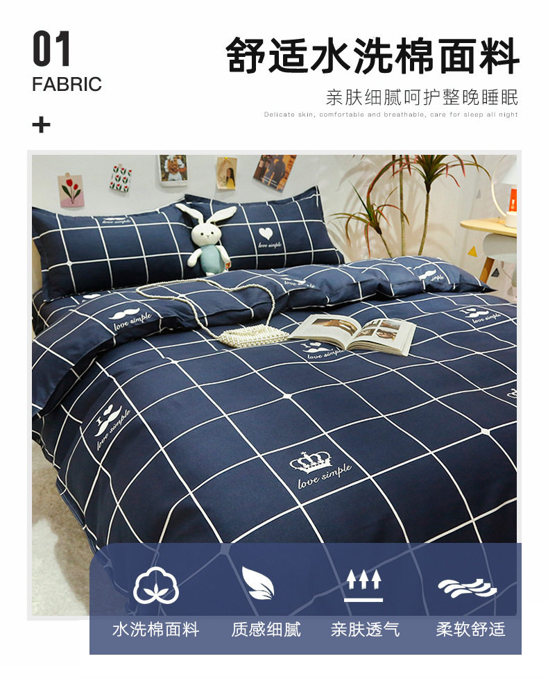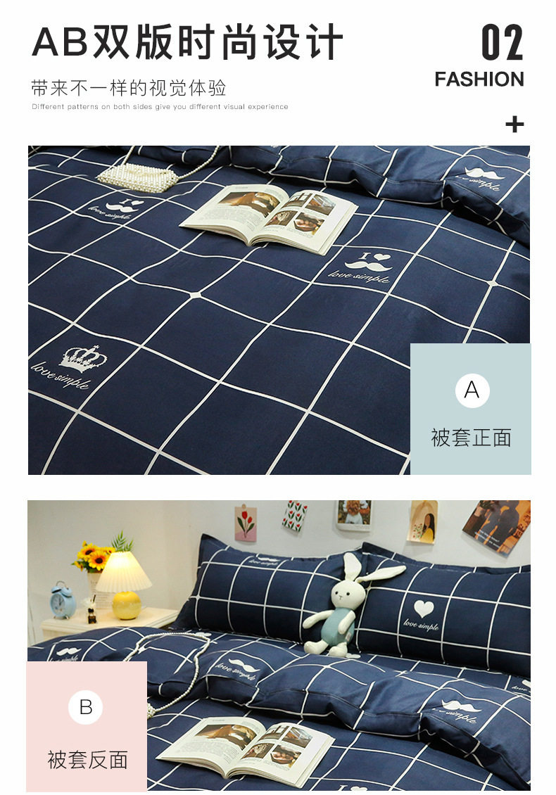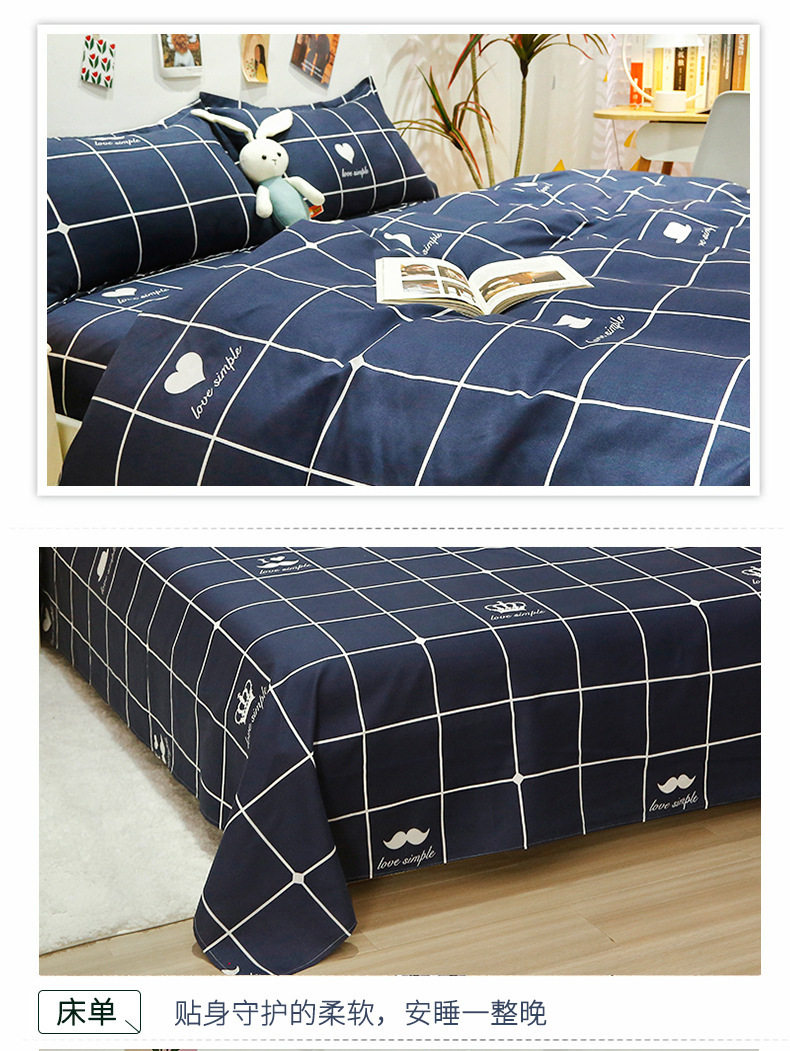 Factory wholesale four-piece simple quilt cover three-piece skin-friendly fabric student dormitory bed sheet quilt cover bedding