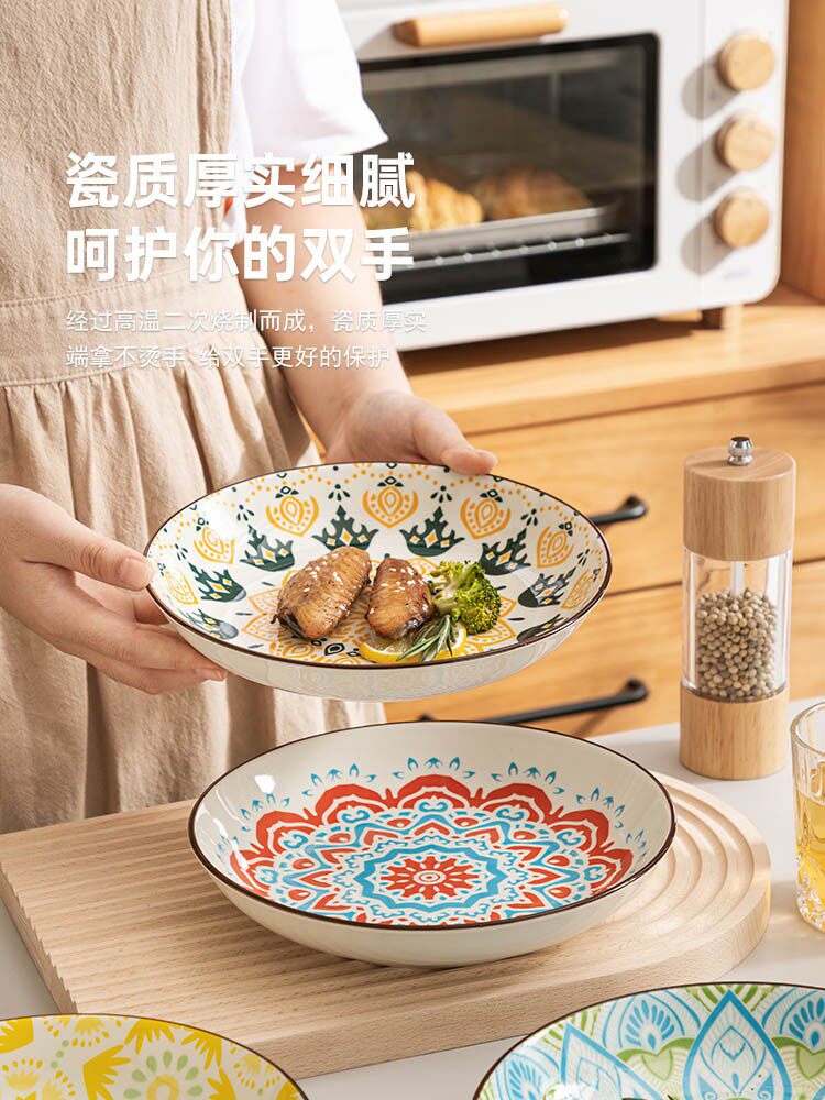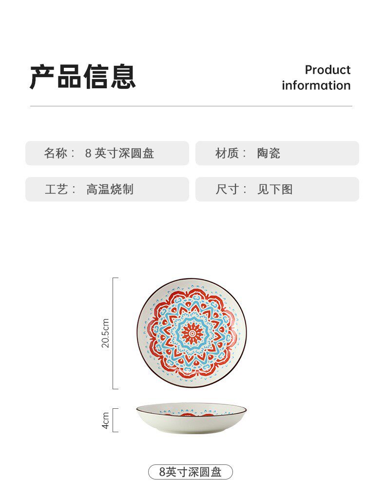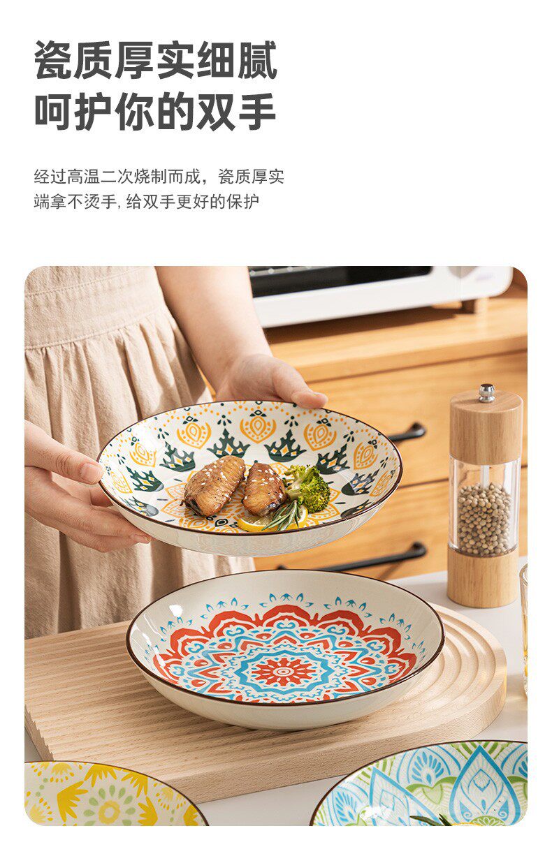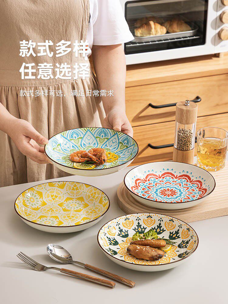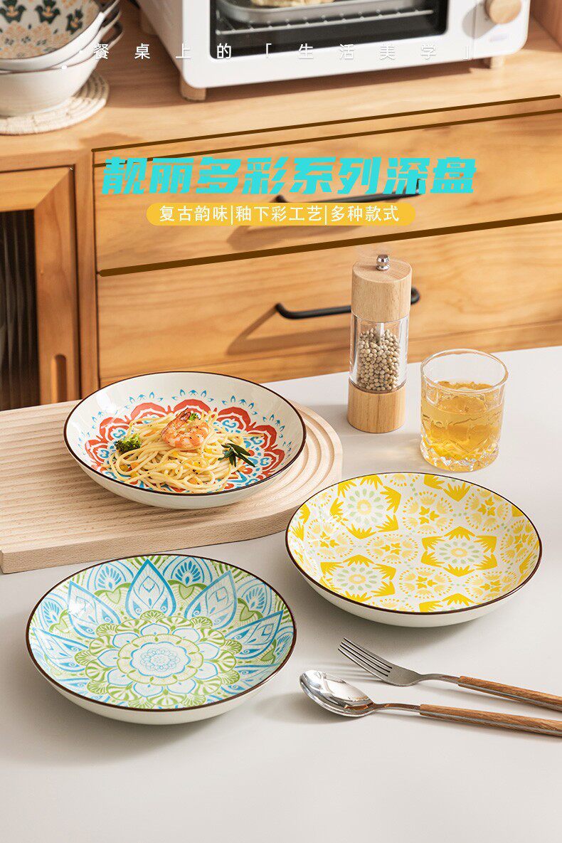 Bohemian Ceramic Deep Soup Plate Flat Plate Round Plate Pickle Plate Japanese Dish Plate Soup Plate Underglaze Color Machine Printing