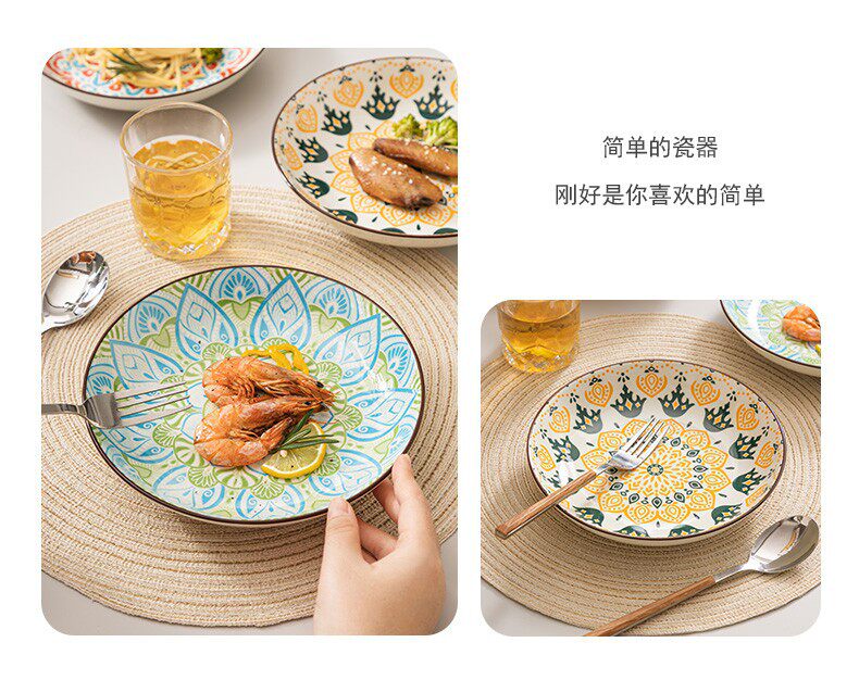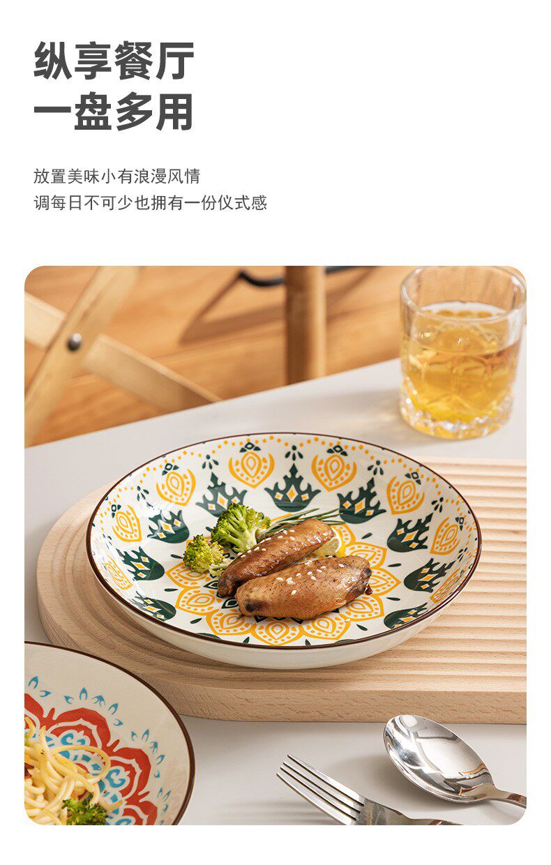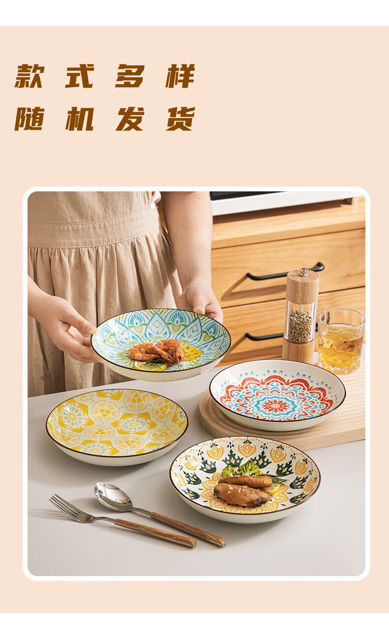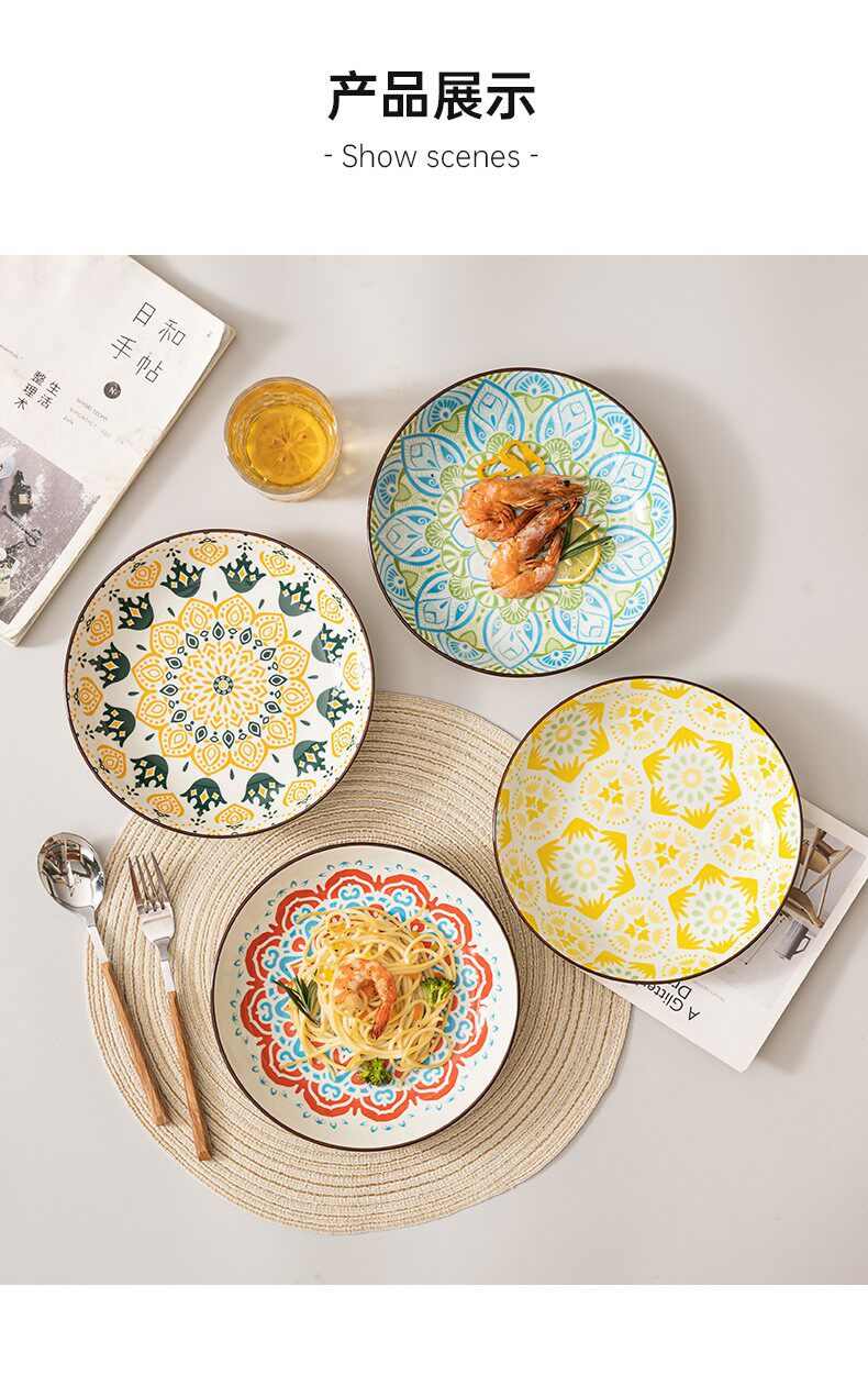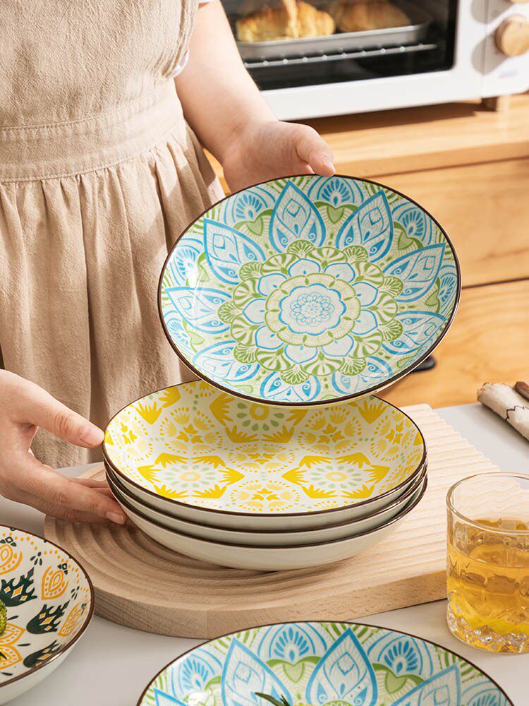 Bohemian Ceramic Deep Soup Plate Flat Plate Round Plate Pickle Plate Japanese Dish Plate Soup Plate Underglaze Color Machine Printing