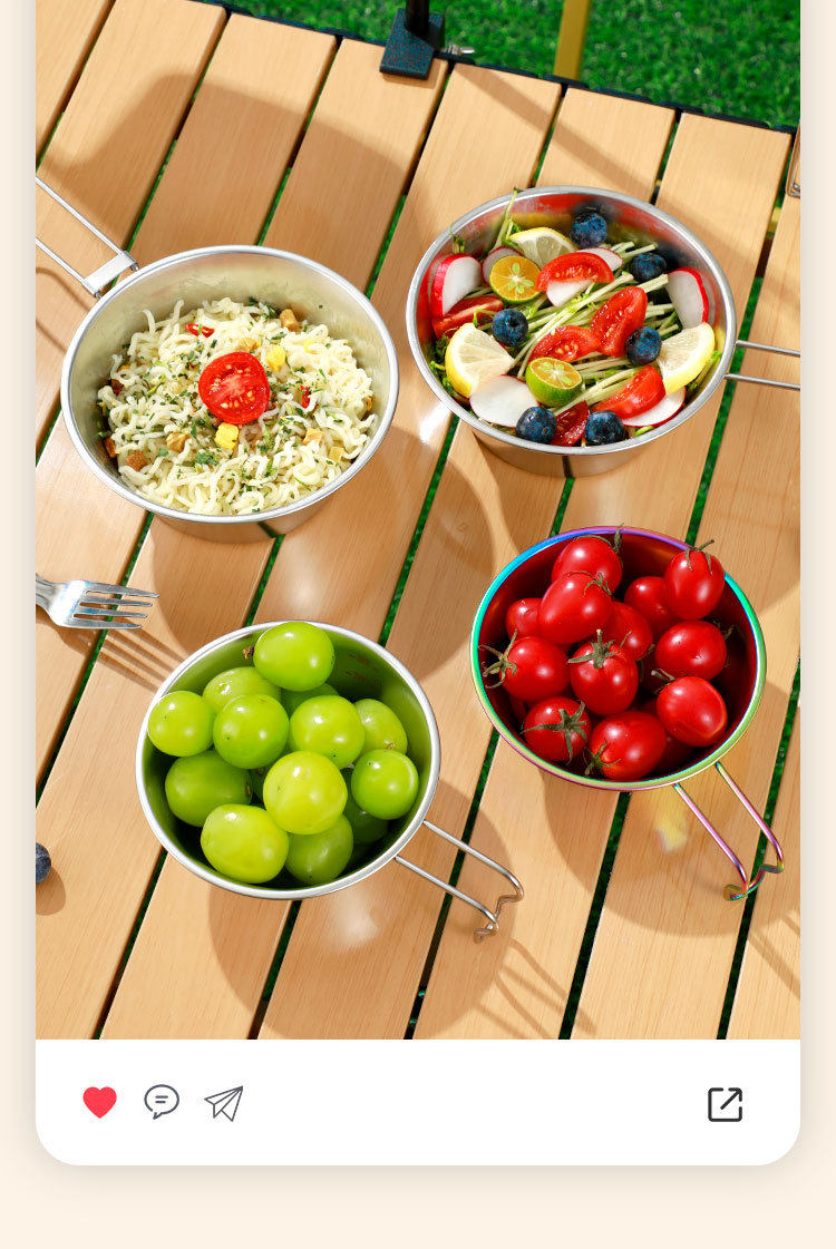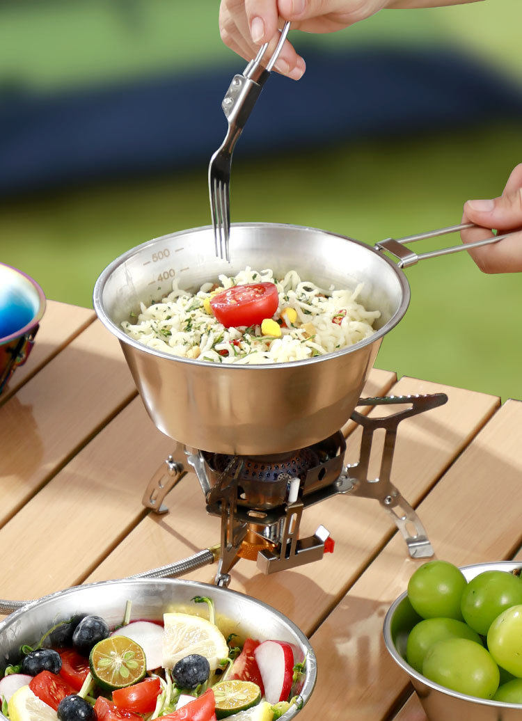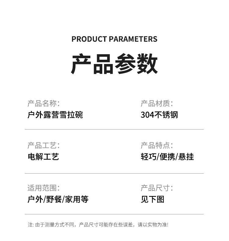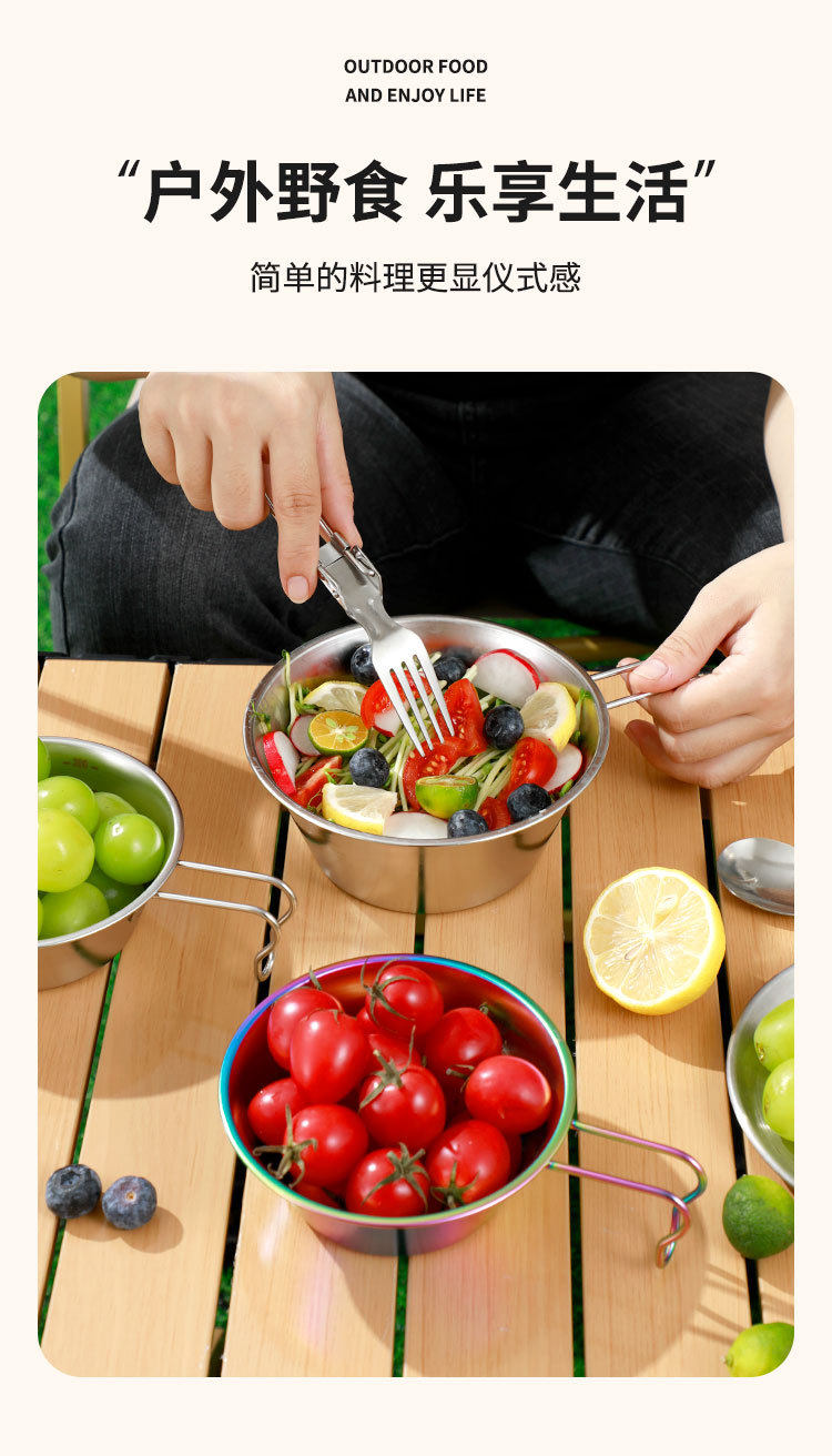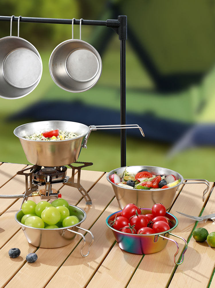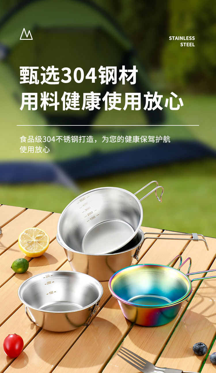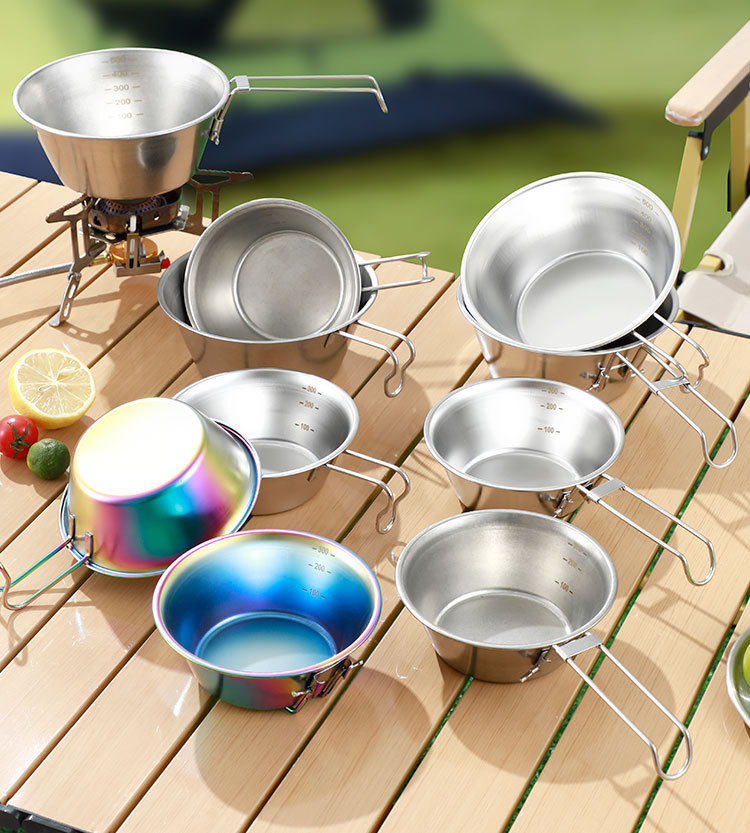 Outdoor Snow Bowl 304 food grade stainless steel portable foldable hanging handle mountain camping Snow Bowl