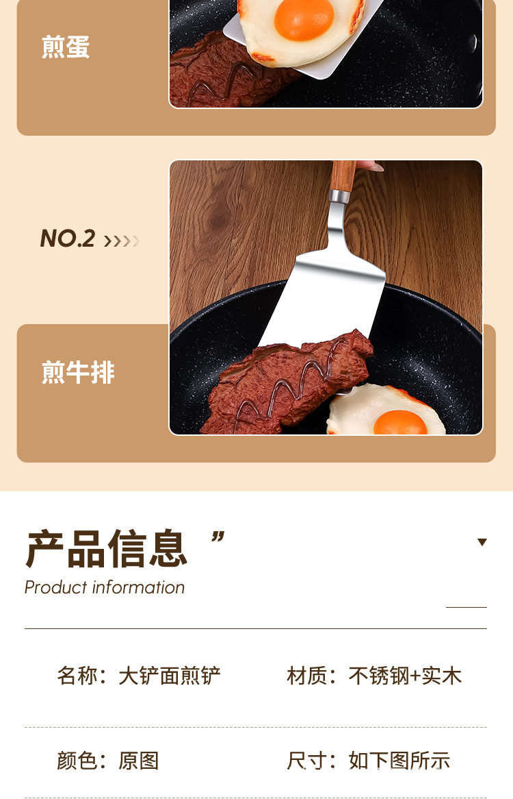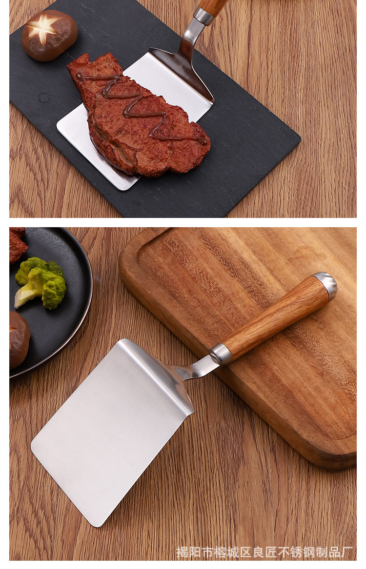 Stainless Steel Cooking Spatula Steak Spatula Pear Wood Handle Home Kitchen Pizza Spatula Cake Spatula Kitchen Utensils Steak Spatula
