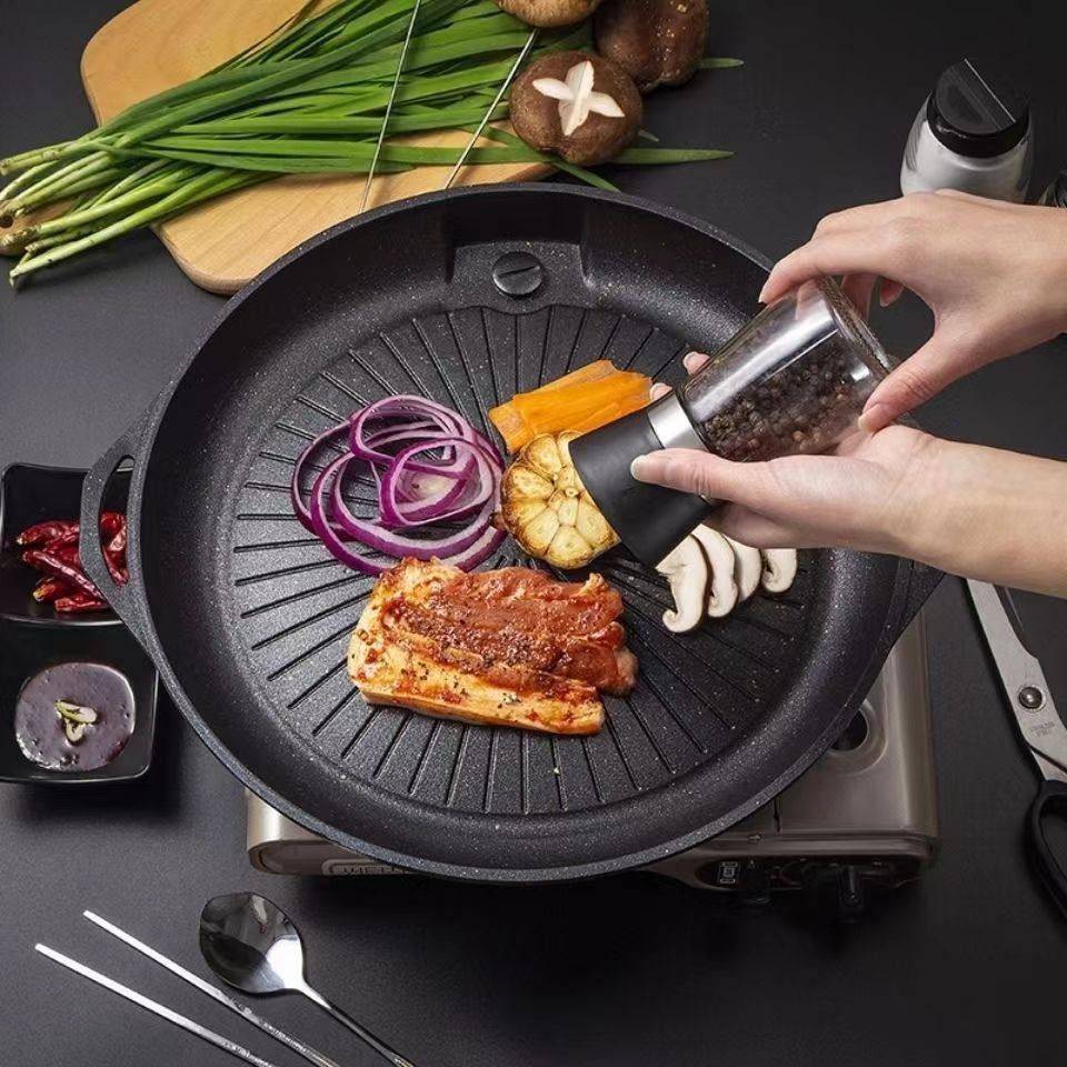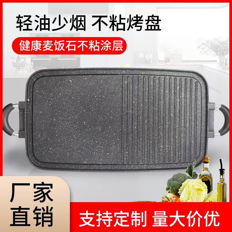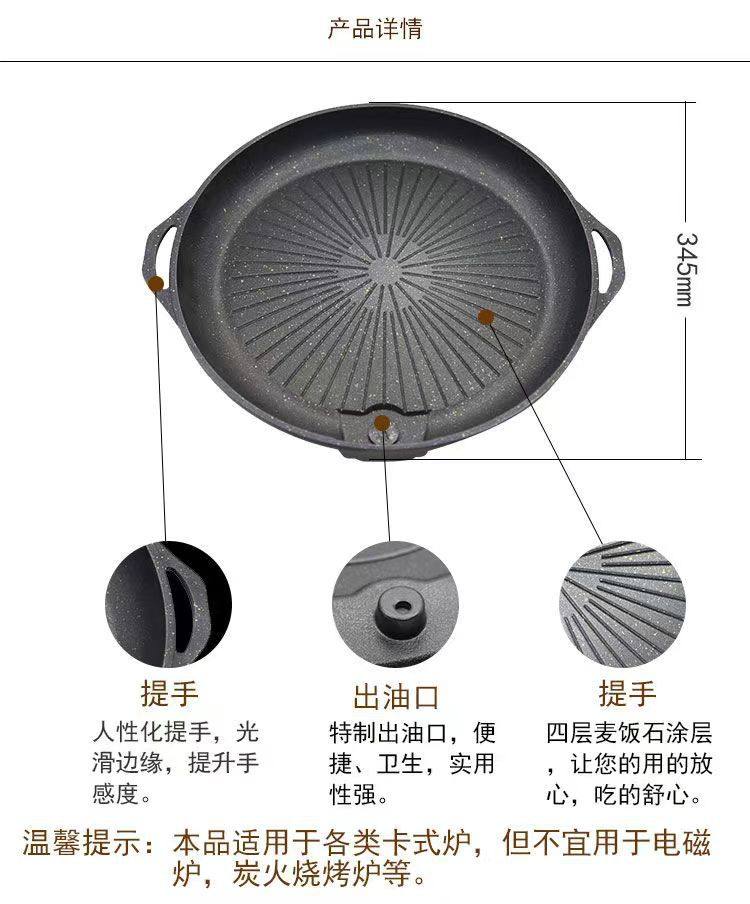 Commercial cassette stove round baking pan maifan Stone non-stick pan oil leakage portable household outdoor smoke-free barbecue pan barbecue plate