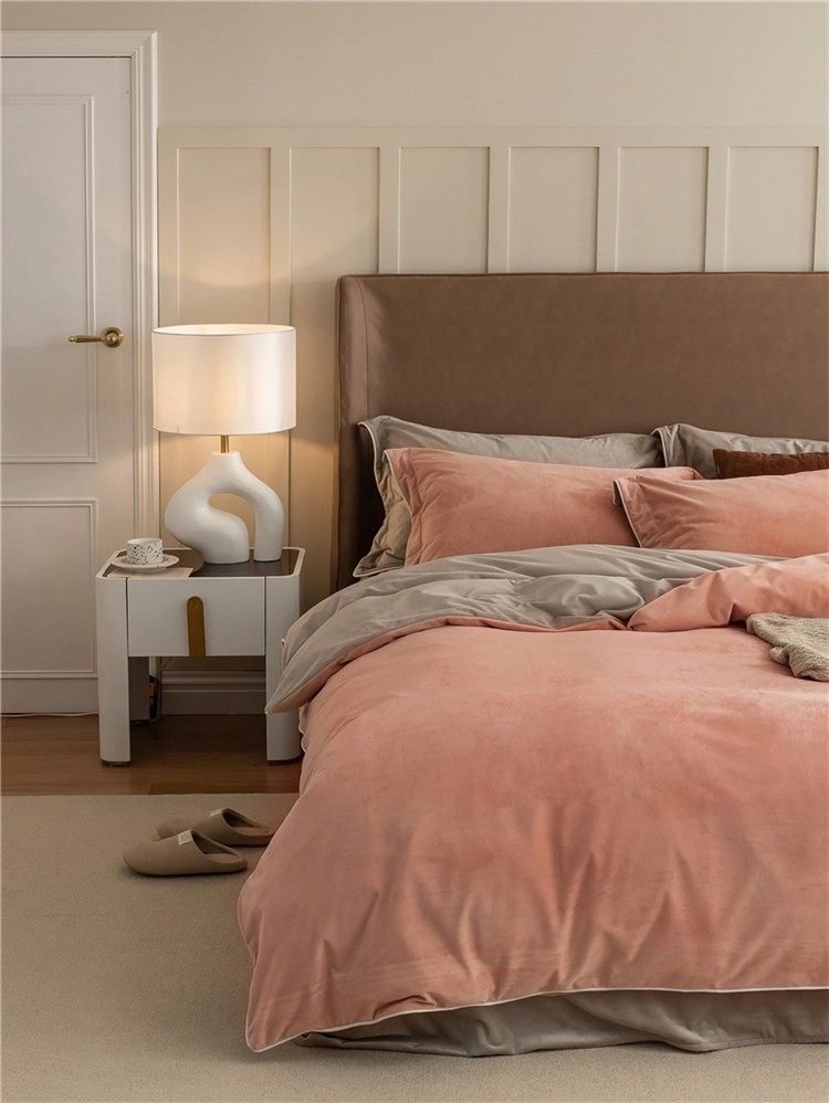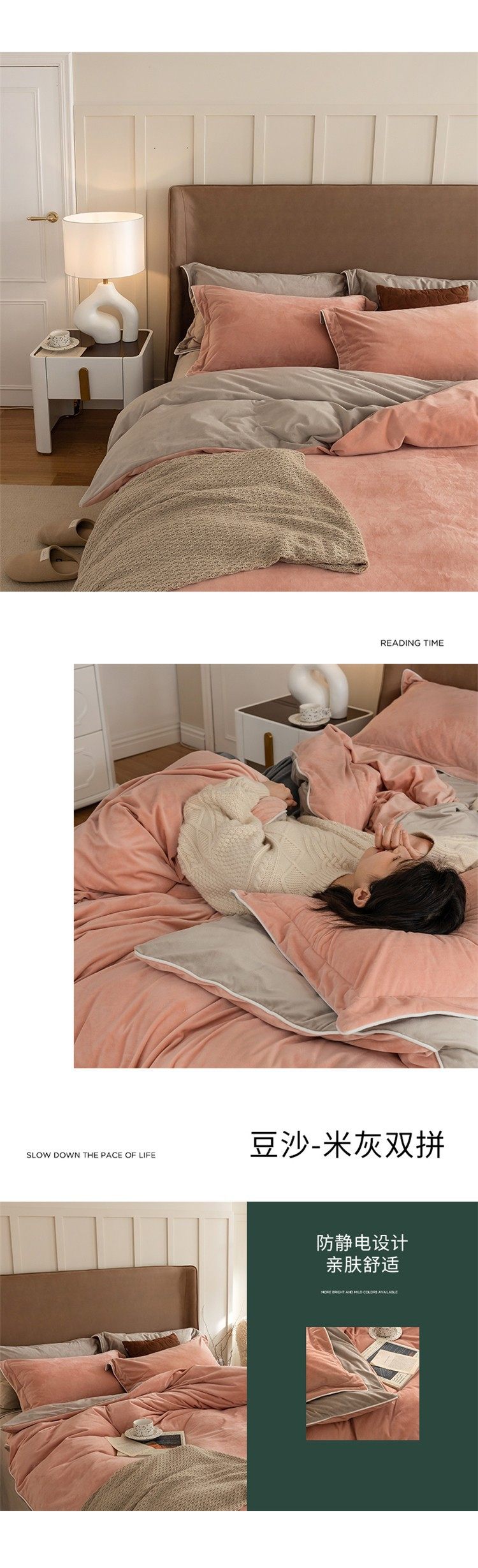 Light Luxury and High-End Thickened Milk Velvet Four-Piece Set, Winter Warm Coral Velvet Duvet Cover, Anti-Static Bed Sheet Three-Piece Set