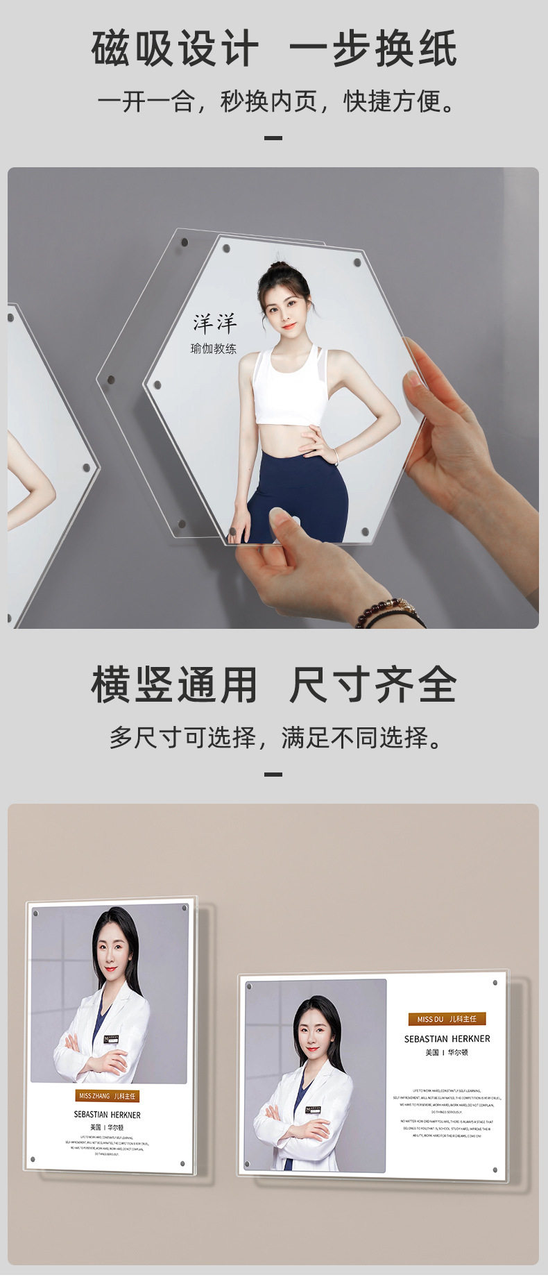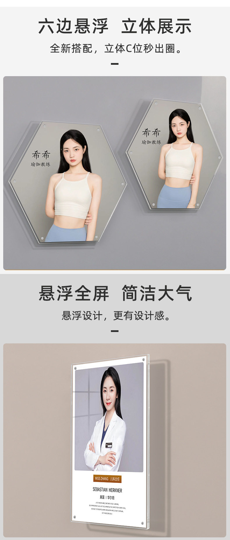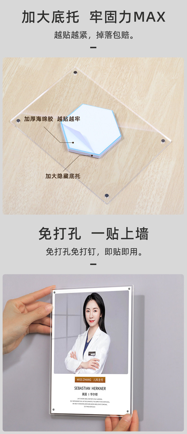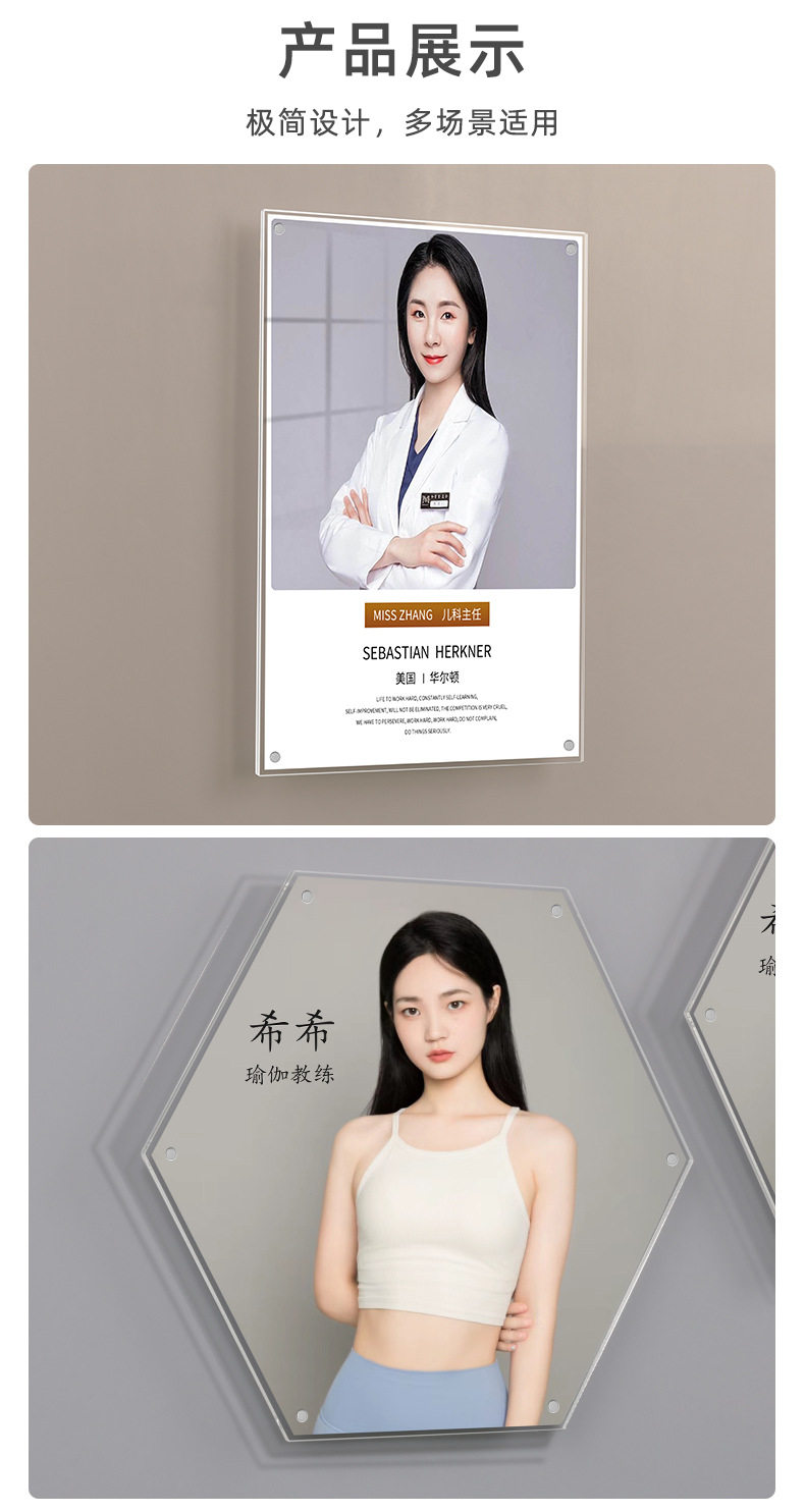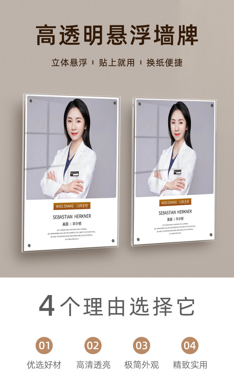 Acrylic A4 Suspended Photo Frame Teacher Profile Image Wall Punch-Free Wall Hanging Certificate Frame Transparent Patent Display Frame