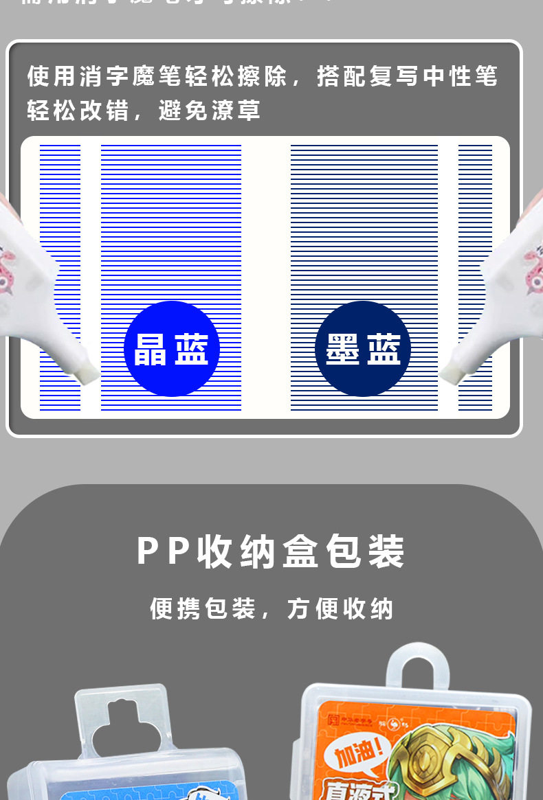 | Color | Blue 1 box/10 PCs (Magic Pen erasable) flat box,Ink Blue 1 box/10 pieces (Magic Pen erasable) flat box,Black 1 box/10 pieces (not erasable) flat box,Blue 1 box/15 PCs (Magic Pen erasable) square box,Ink Blue 1 box/15 PCs (Magic Pen erasable) square box,Black 1 box/15 PCs (non-erasable) square box |