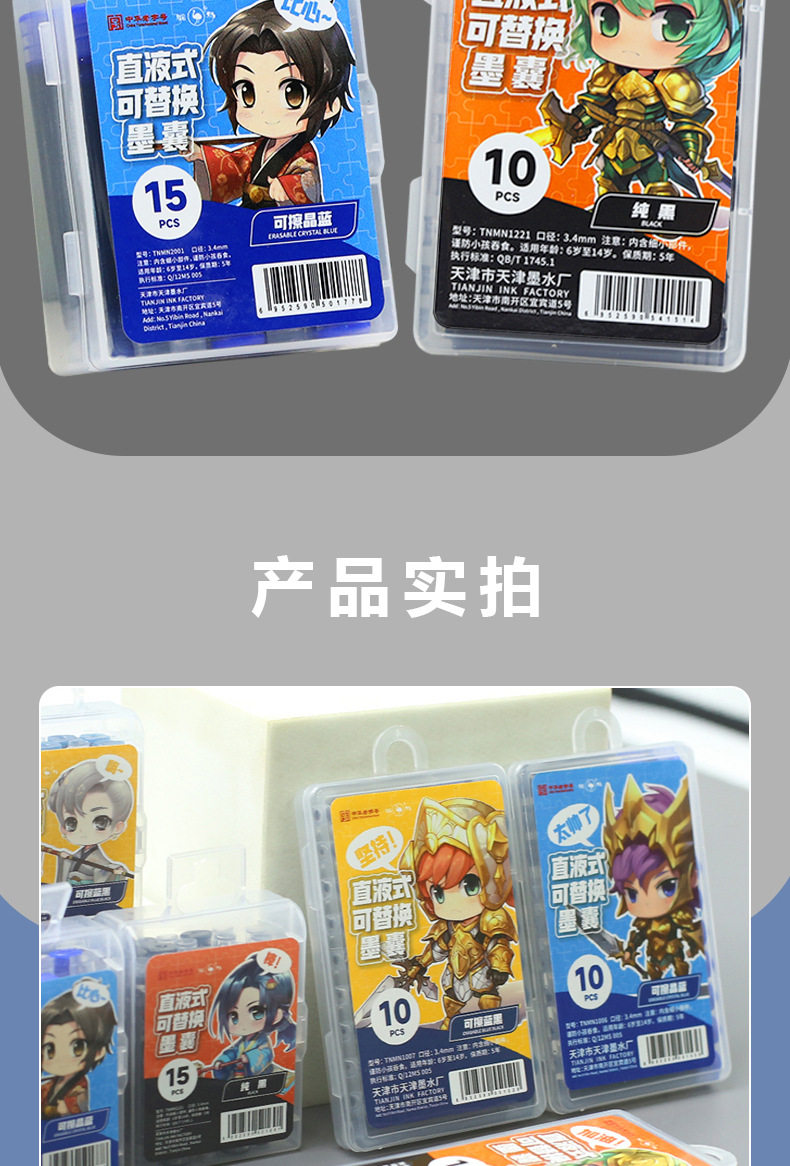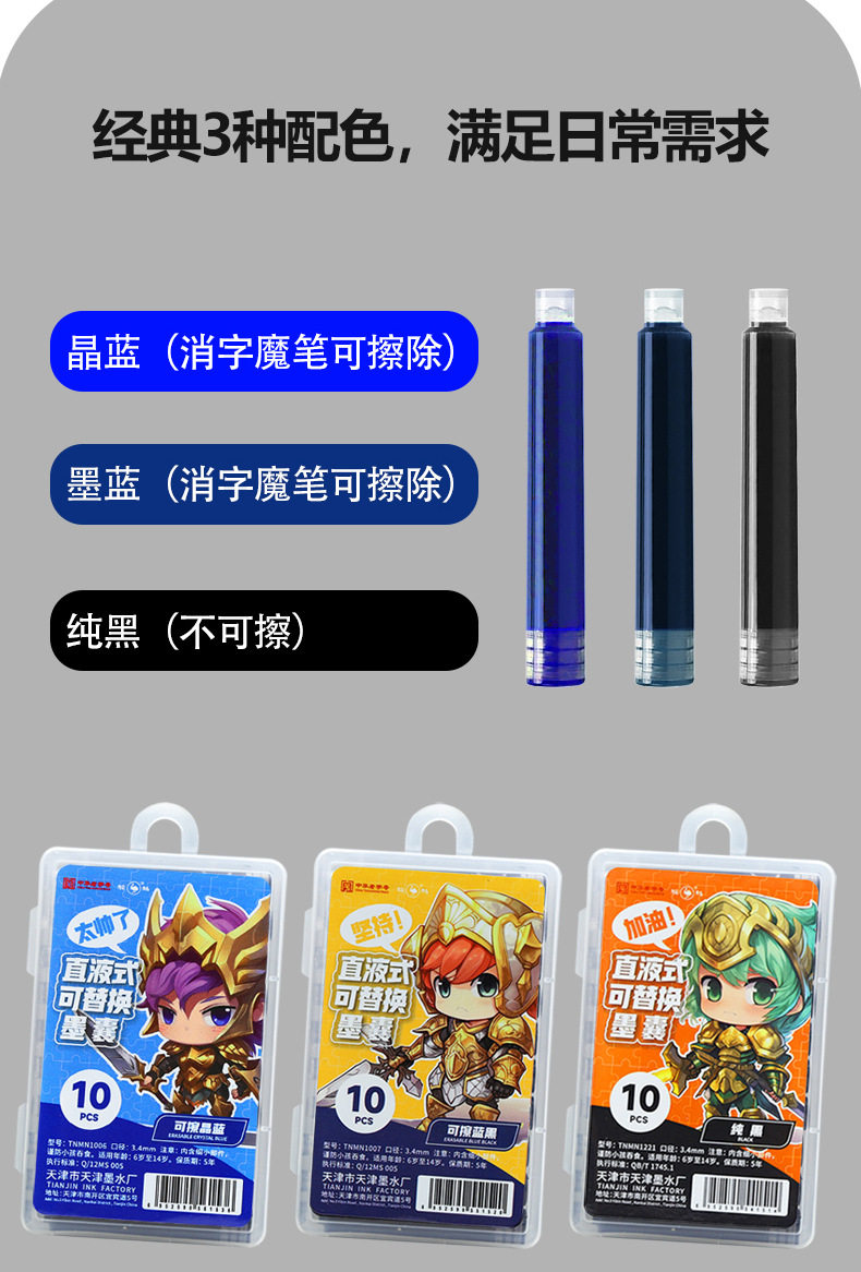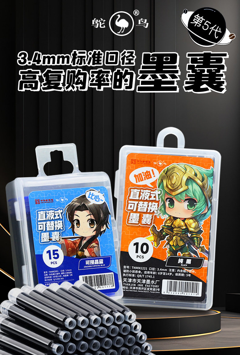Ostrich pen ink bag can replace primary school student 3.4 caliber universal erasable pure blue ink ink blue black ink liner