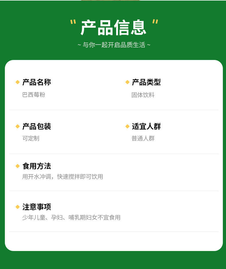 | Packaging specifications | Brazilian berry powder |