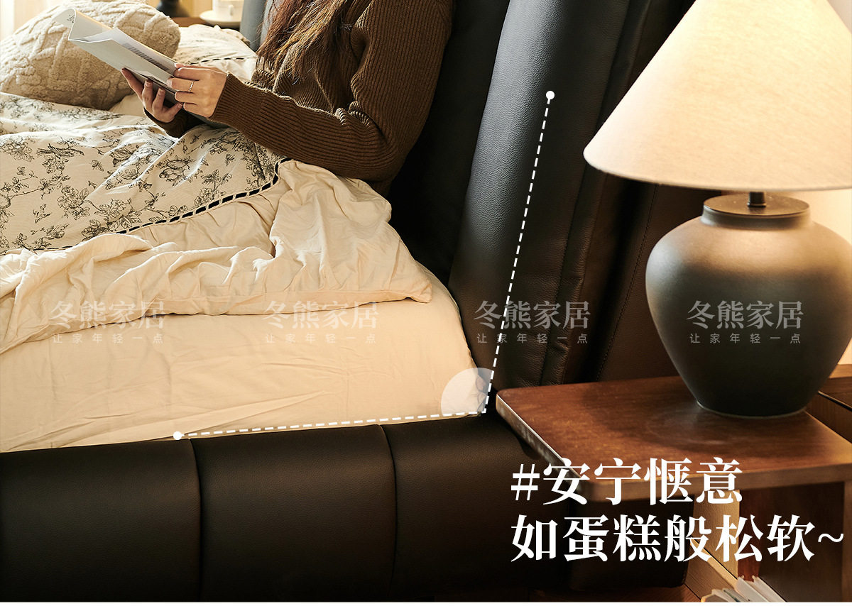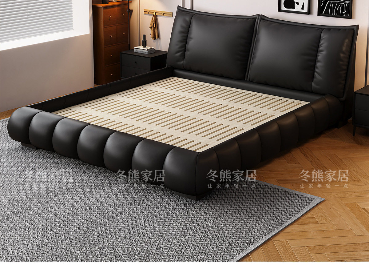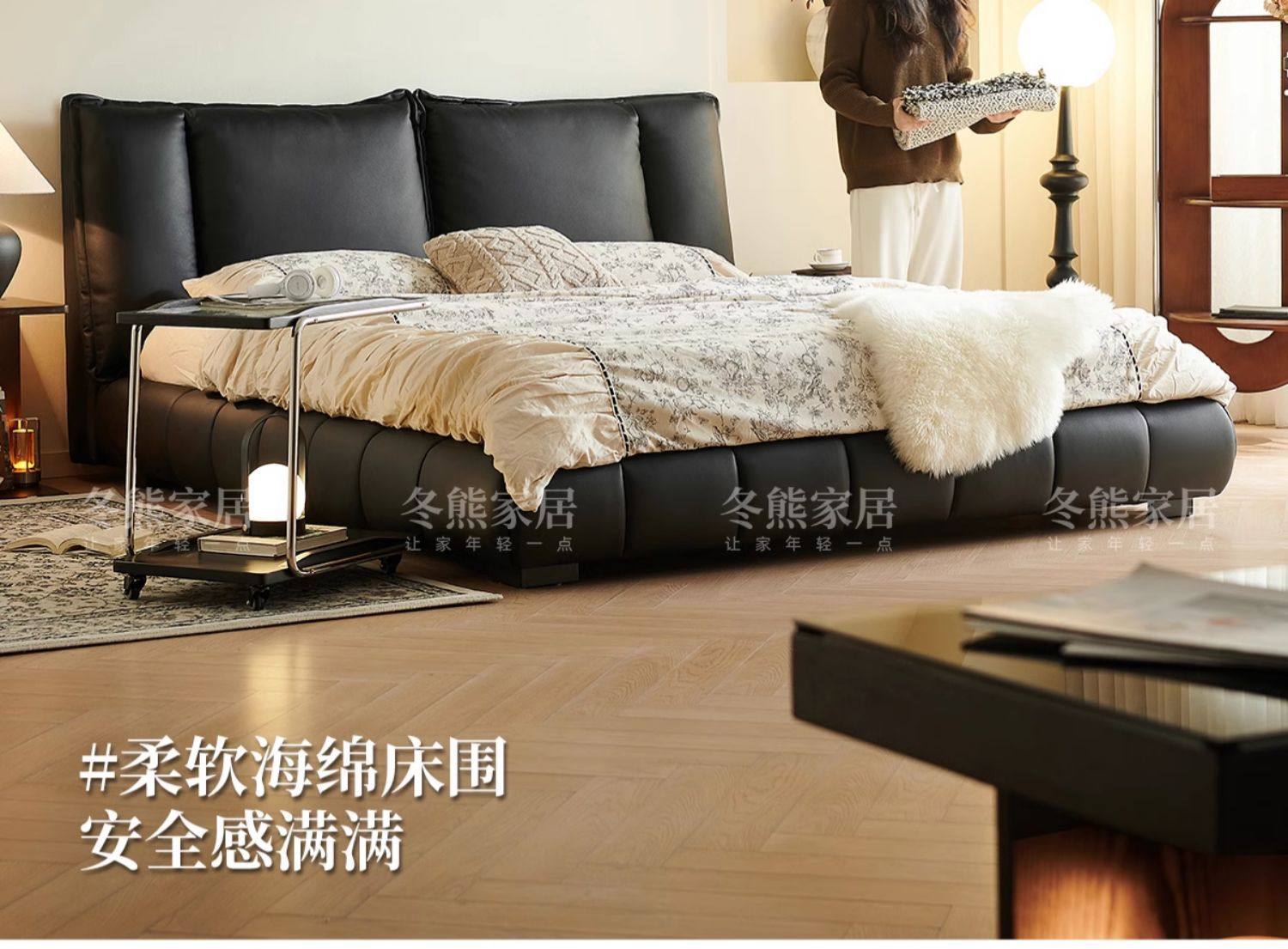 Tongyu Special Sailboat French Modern Double Bed Master Bedroom Classy Atmospheric Retro Style Black Medieval Puff Leather Bed