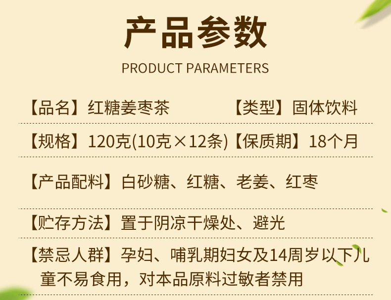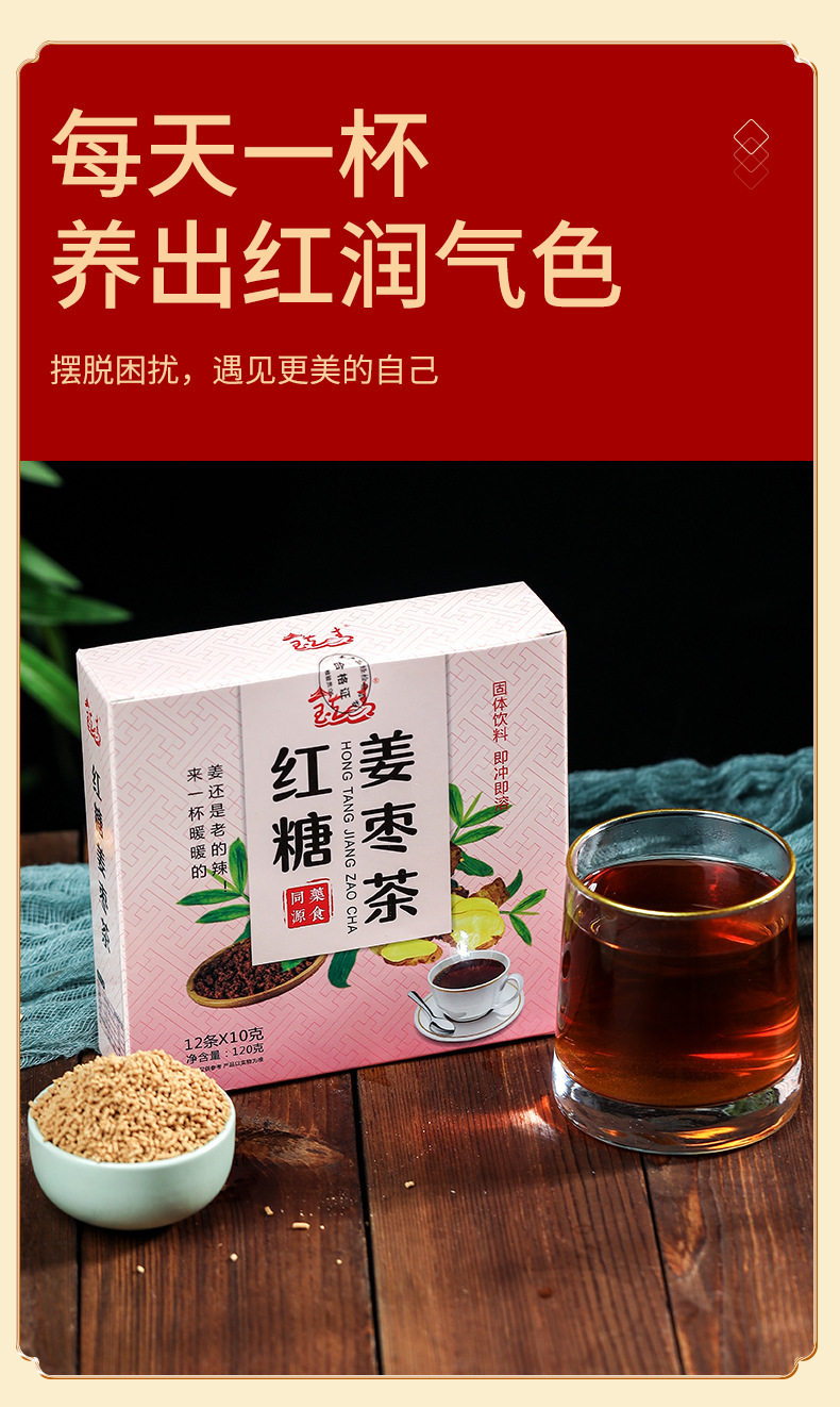 | Packing specification | Brown sugar ginger jujube tea solid beverage |
