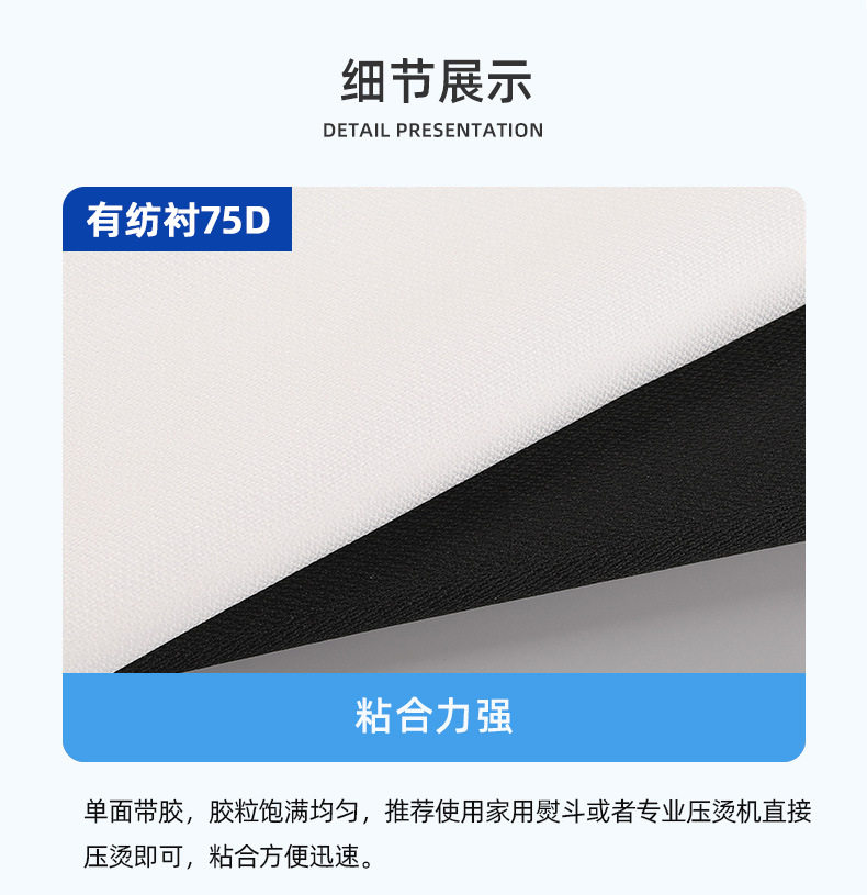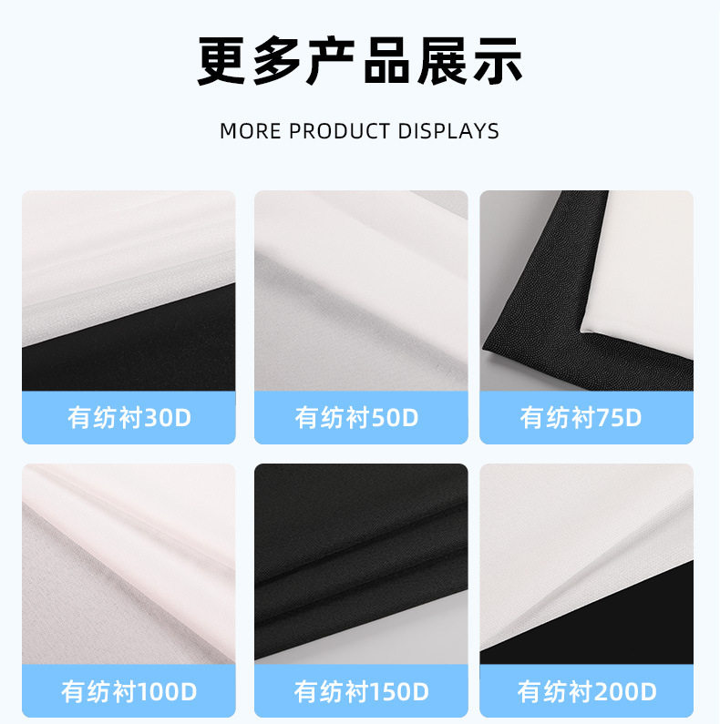 | Color | PES glue 30D cloth lining-black 1.5 m wide,PES glue 30D cloth lining-White 1.5 m wide,PES glue 30D cloth lining-Black 1.6 m wide,PES glue 30D cloth lining-White 1.6 m wide,PES glue 30D cloth lining-white 1.7 m wide,PES glue 30D cloth lining-white 1.8 m wide,PES glue 50D cloth lining-black 1.5 m wide,PES glue 50D cloth lining-White 1.5 m wide,PES glue 50D cloth lining-Black 1.6 m wide,PES glue 50D cloth lining-White 1.6 m wide,PES glue 50D cloth lining-white 1.7 m wide,PES glue 50D cloth lining-white 1.8 m wide,PES glue 75D cloth lining-black 1.5 m wide,PES glue 75D cloth lining-White 1.5 m wide,PES glue 75D cloth lining-gray 1.5 m wide,PES glue 100D cloth lining-black 1.5 m wide,PES glue 100D cloth lining-White 1.5 m wide,PES glue 150D cloth lining-black 1.5 m wide,PES glue 150D cloth lining-White 1.5 m wide,PES glue 200D cloth lining-black 1.5 m wide,PES glue 200D cloth lining-White 1.5 m wide,PES glue 300D cloth lining-black 1.5 m wide,PES glue 300D cloth lining-White 1.5 m wide |
