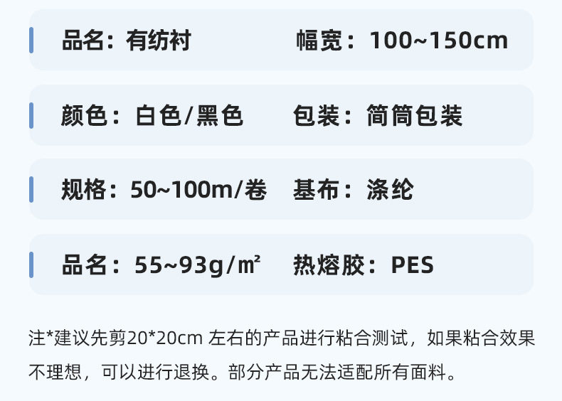 | Base fabric type | Adhesive lining |