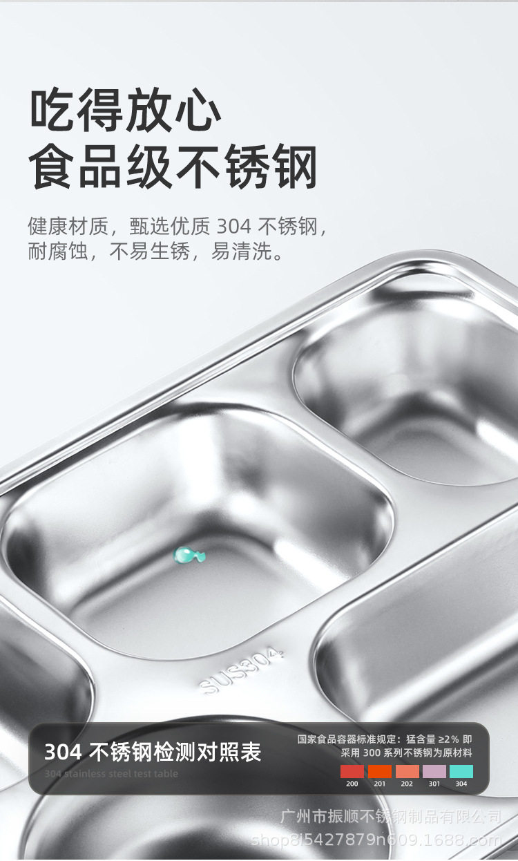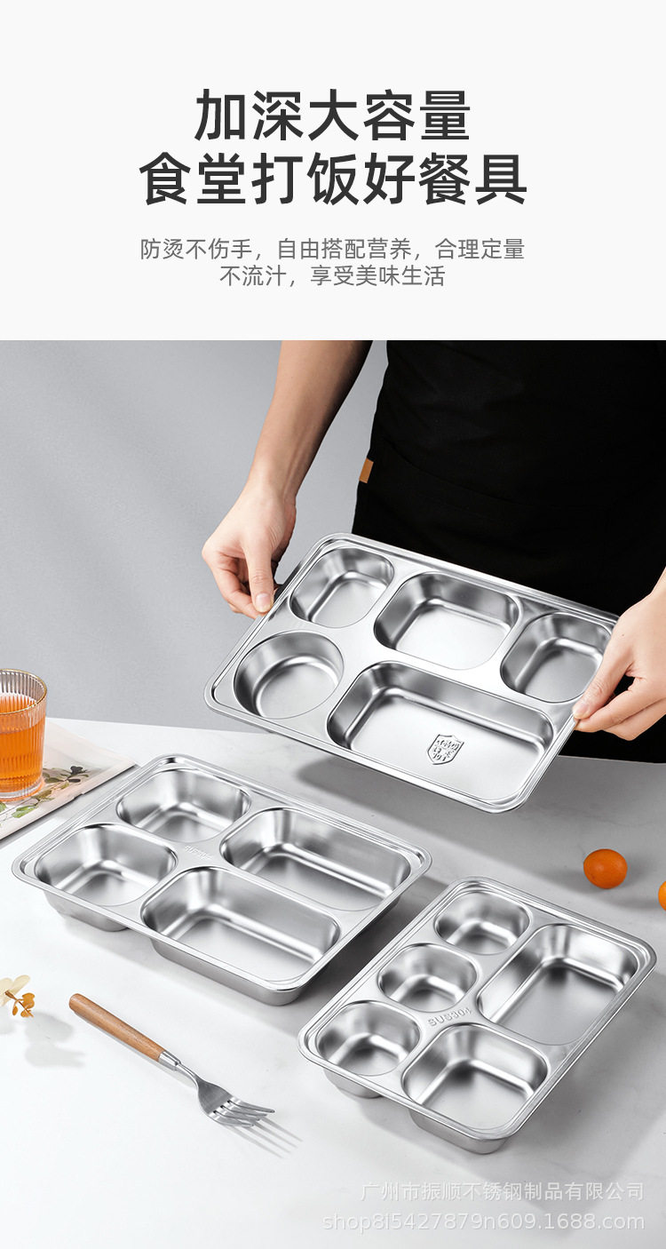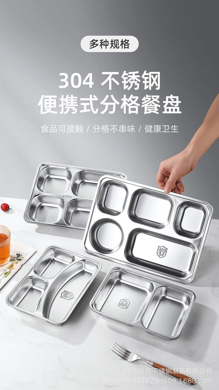 304 Stainless Steel Dinner Plate Lunch Box Student Children's School Nursing Home Factory Canteen Split Fast Food Plate Split Plate