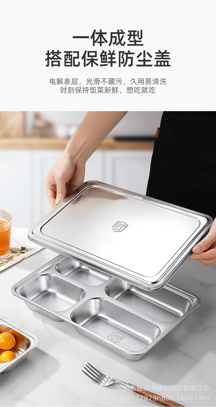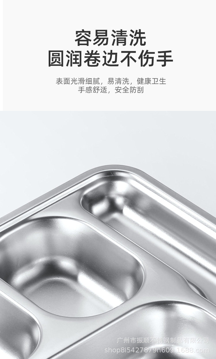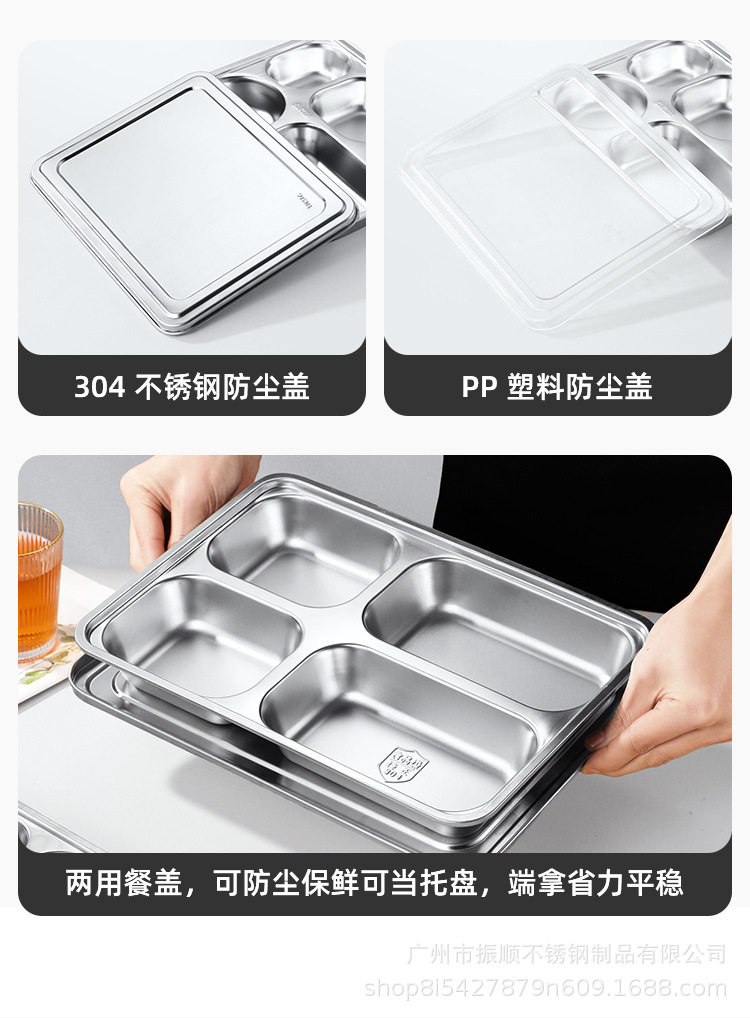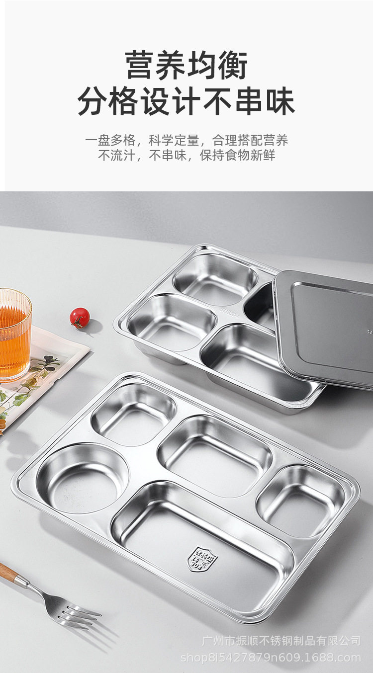 304 Stainless Steel Dinner Plate Lunch Box Student Children's School Nursing Home Factory Canteen Split Fast Food Plate Split Plate