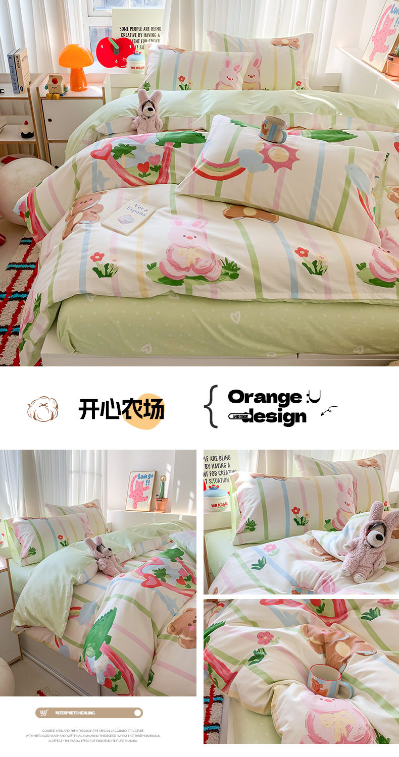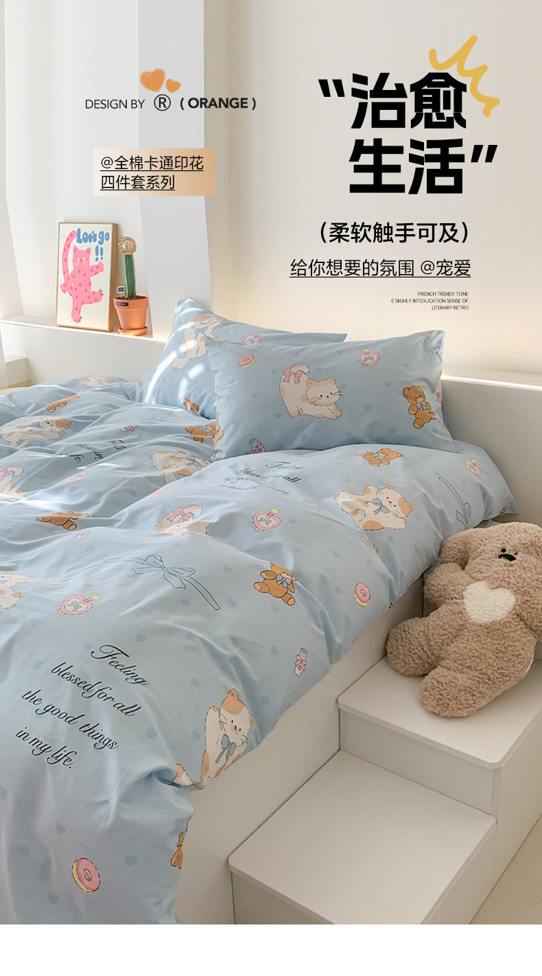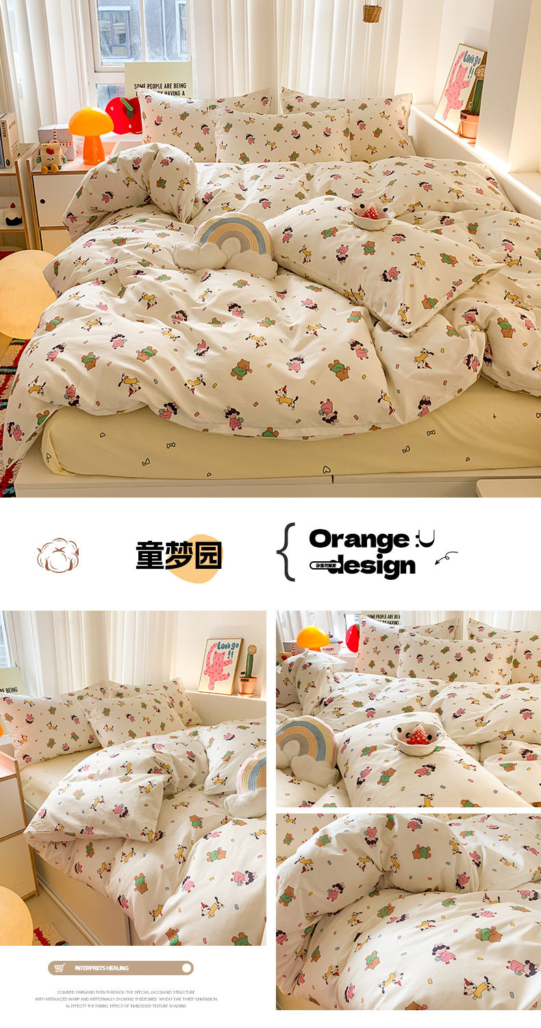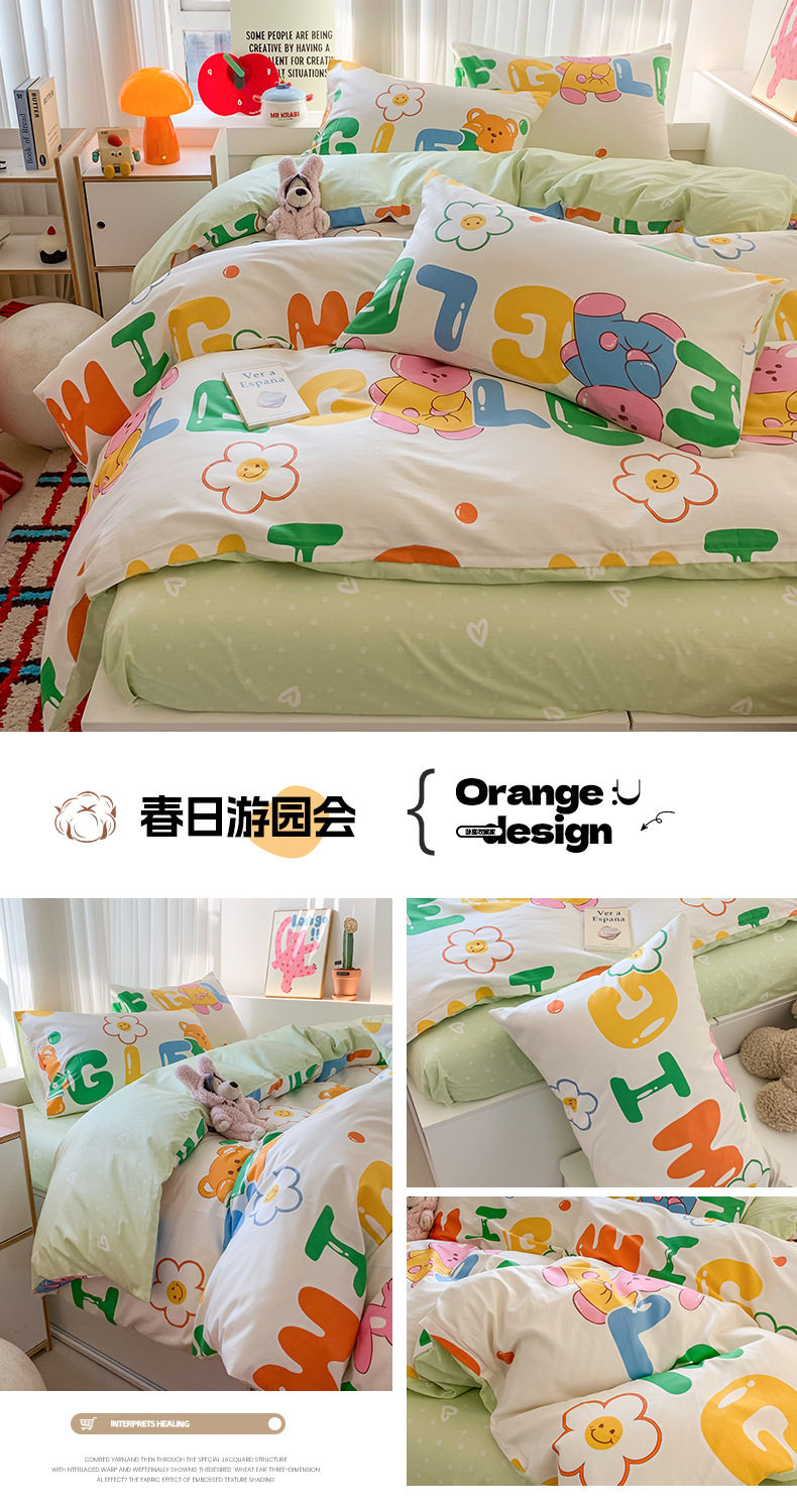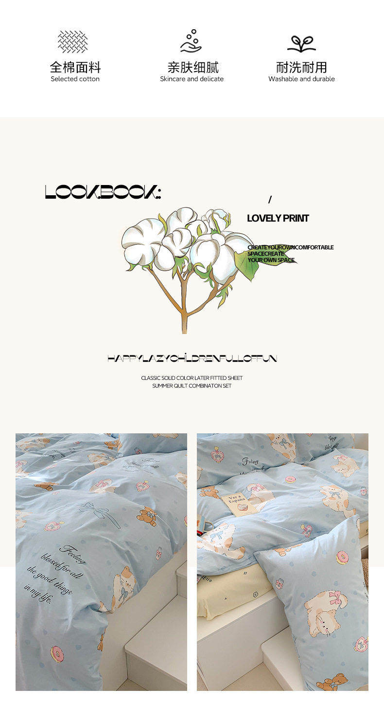 2025 Spring All-Cotton Four-Piece Set with Cartoon Print, Pure Cotton Bedding Set, Duvet Cover, Bed Sheet for 1.2m Bed, Three-Piece Set Wholesale