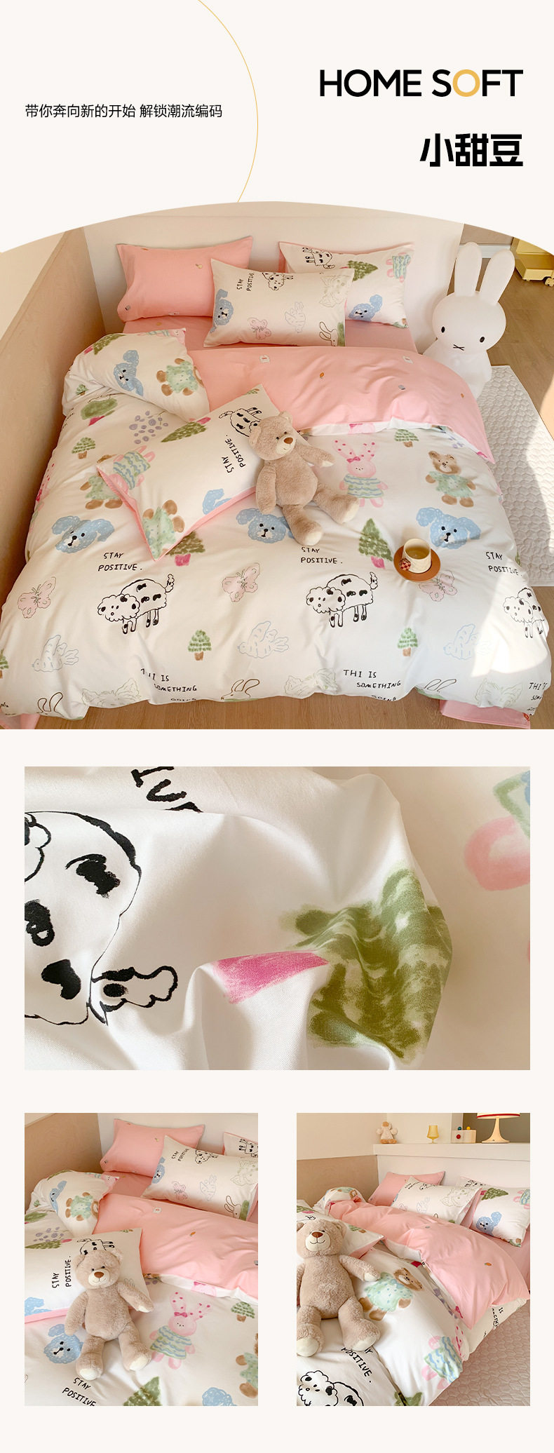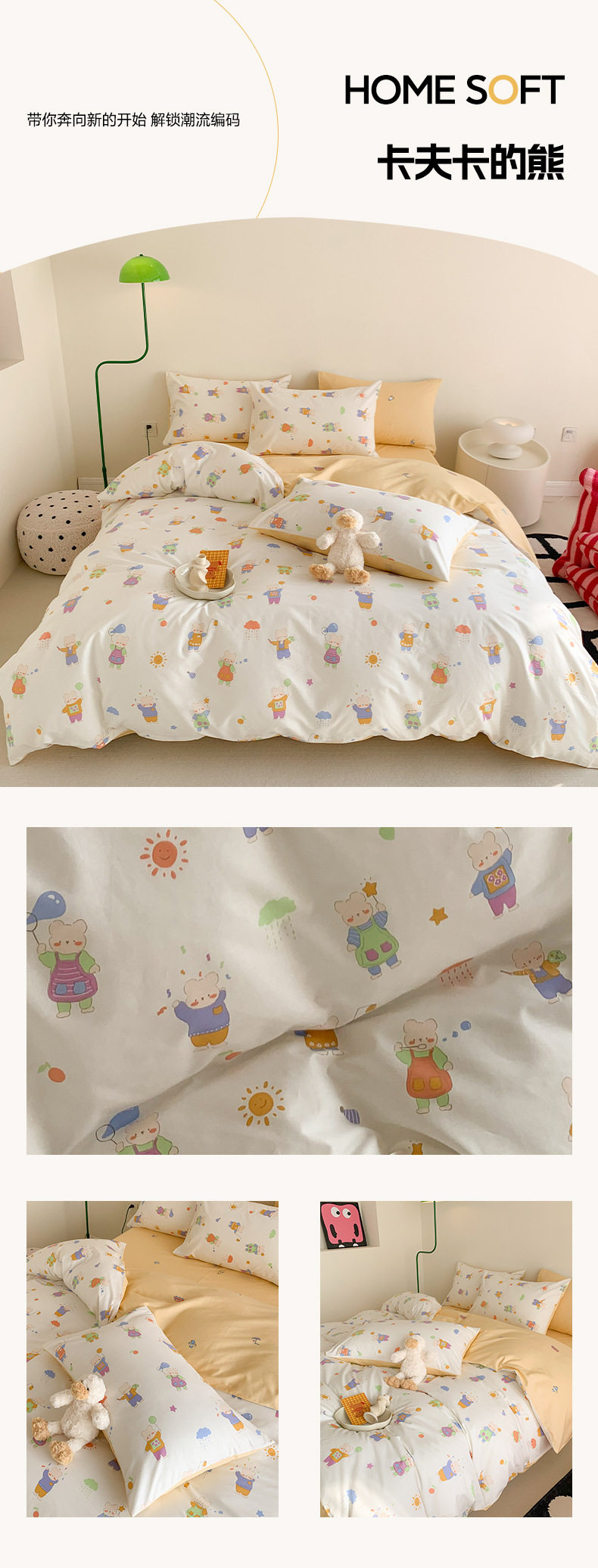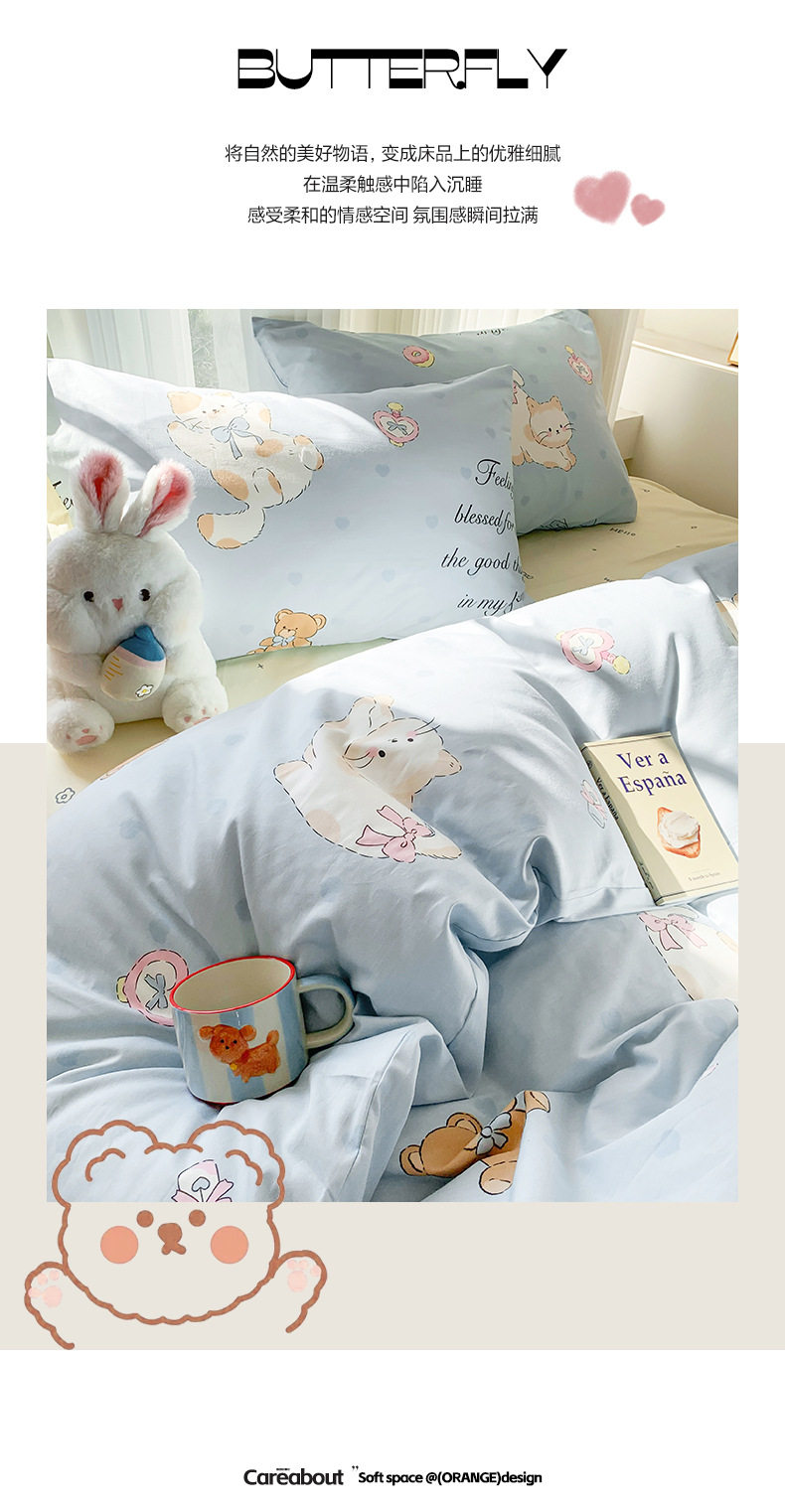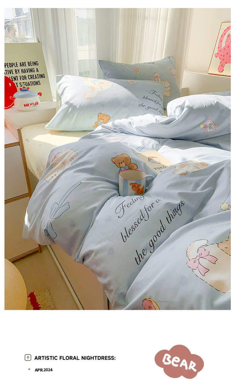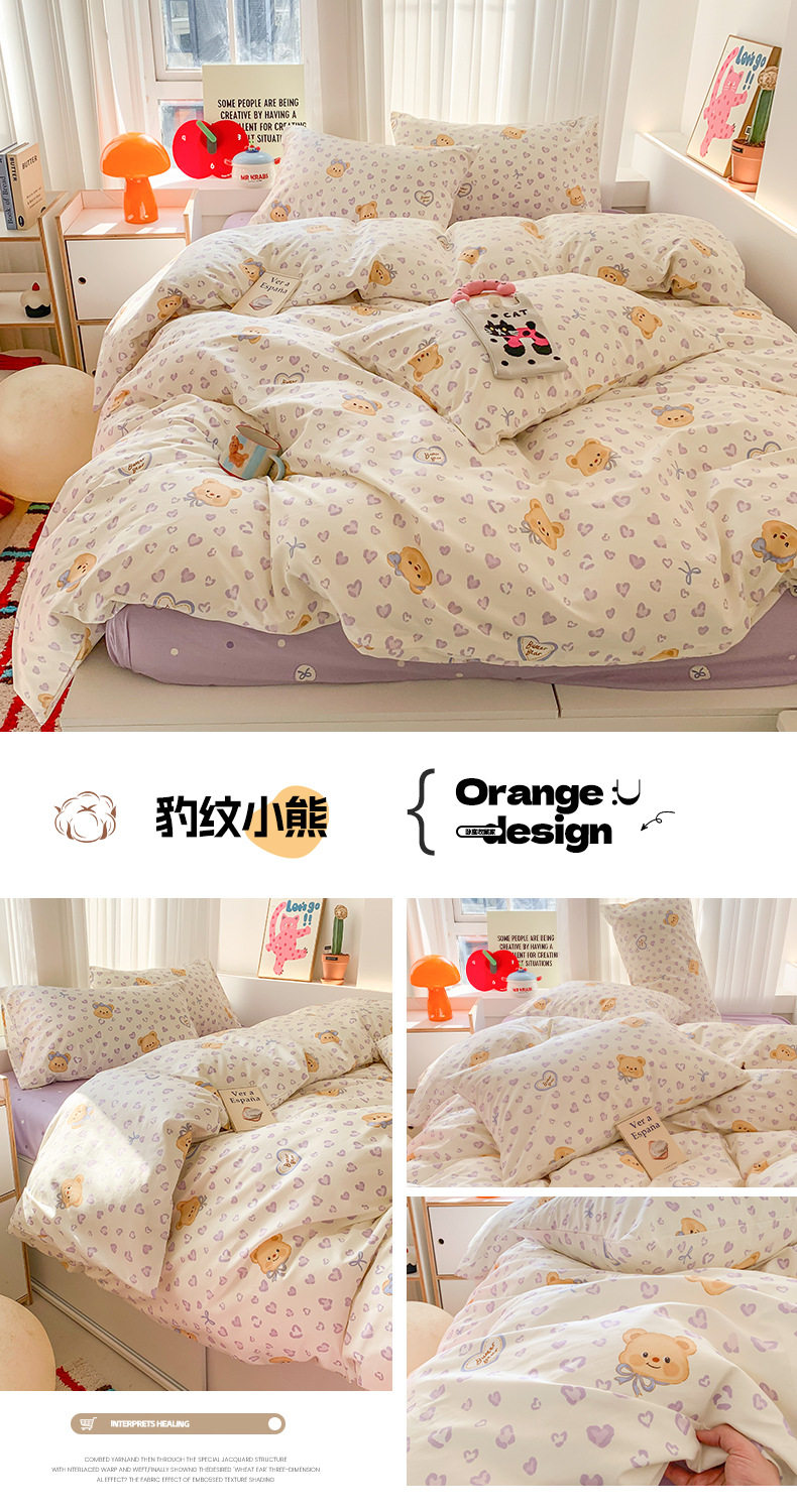2025 Spring All-Cotton Four-Piece Set with Cartoon Print, Pure Cotton Bedding Set, Duvet Cover, Bed Sheet for 1.2m Bed, Three-Piece Set Wholesale