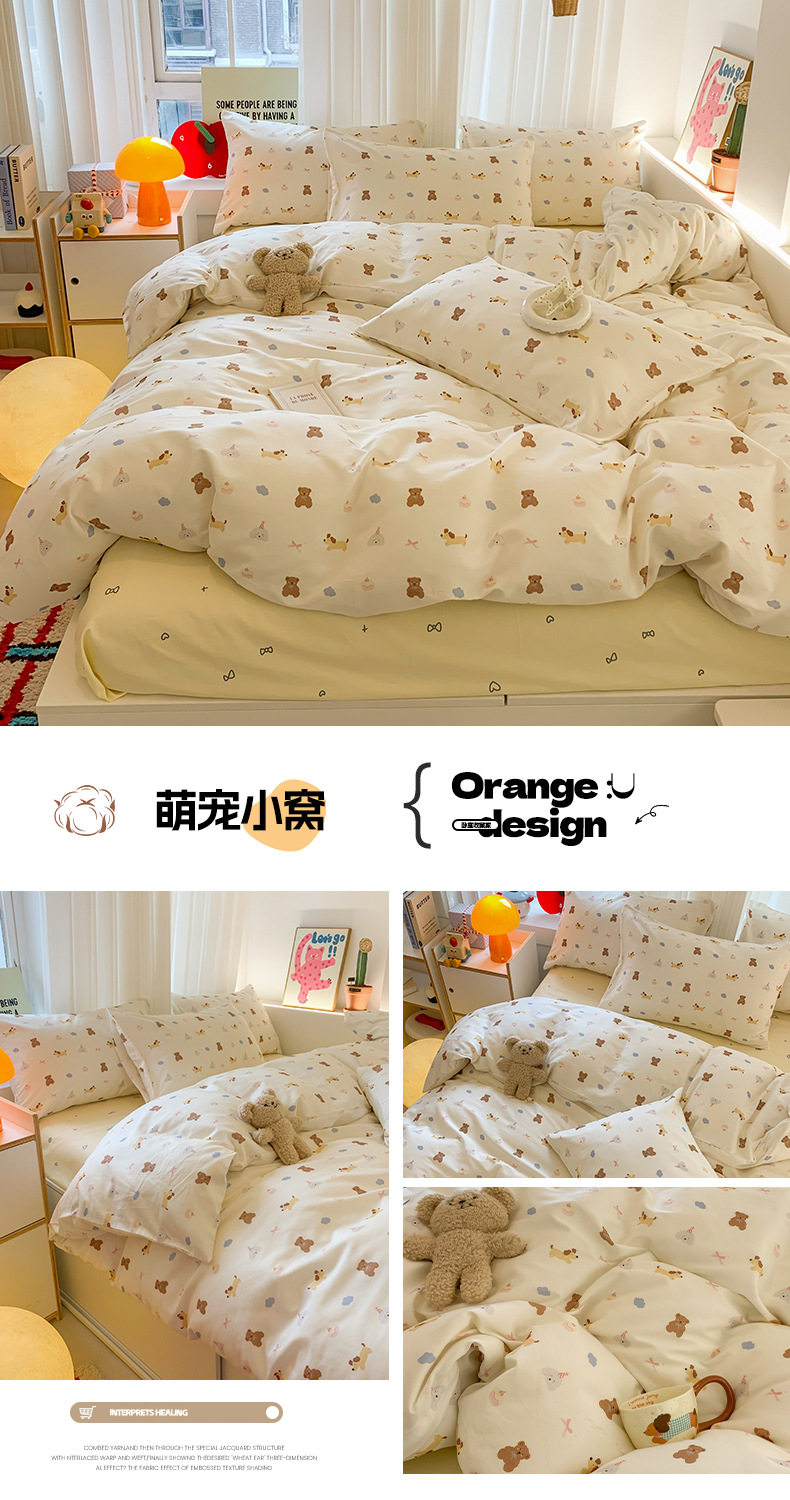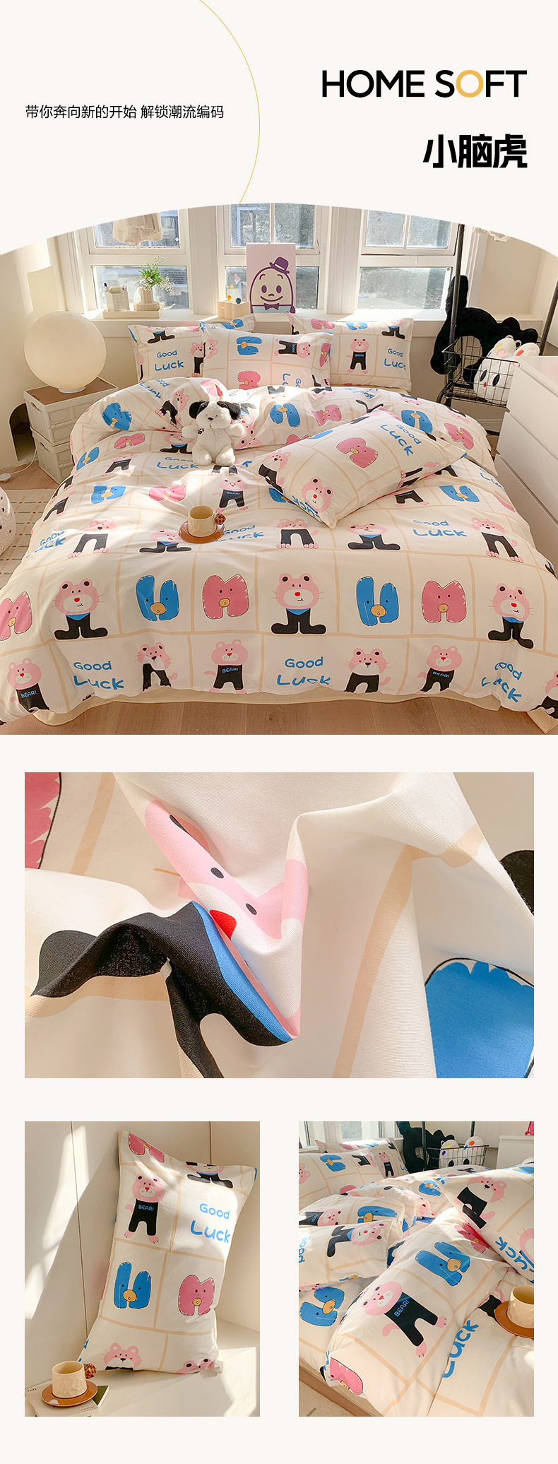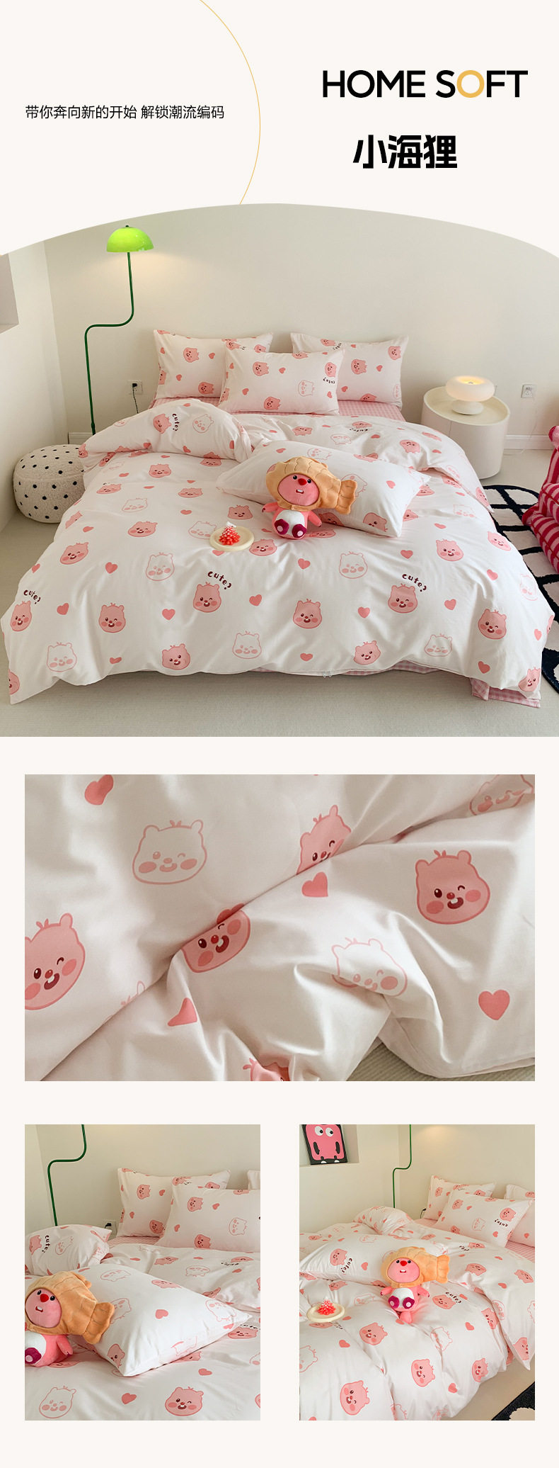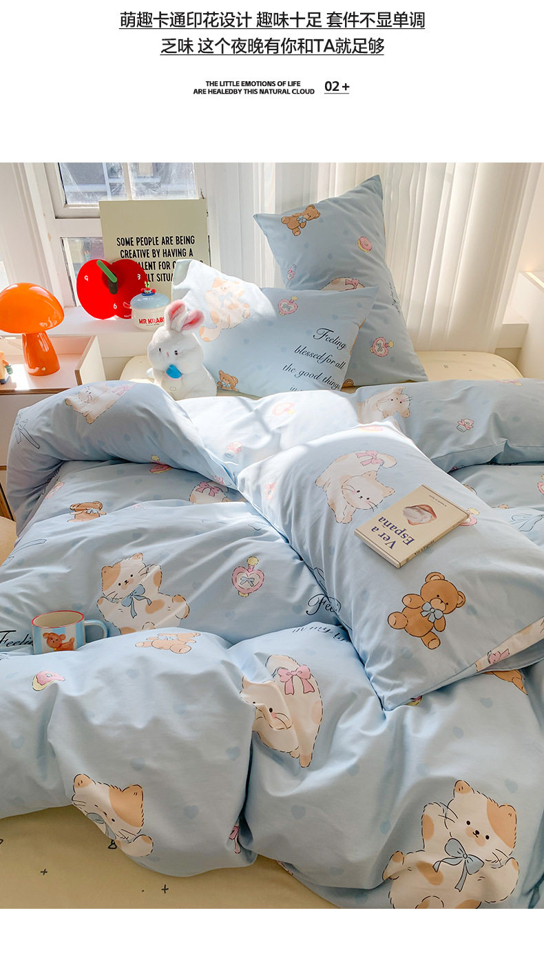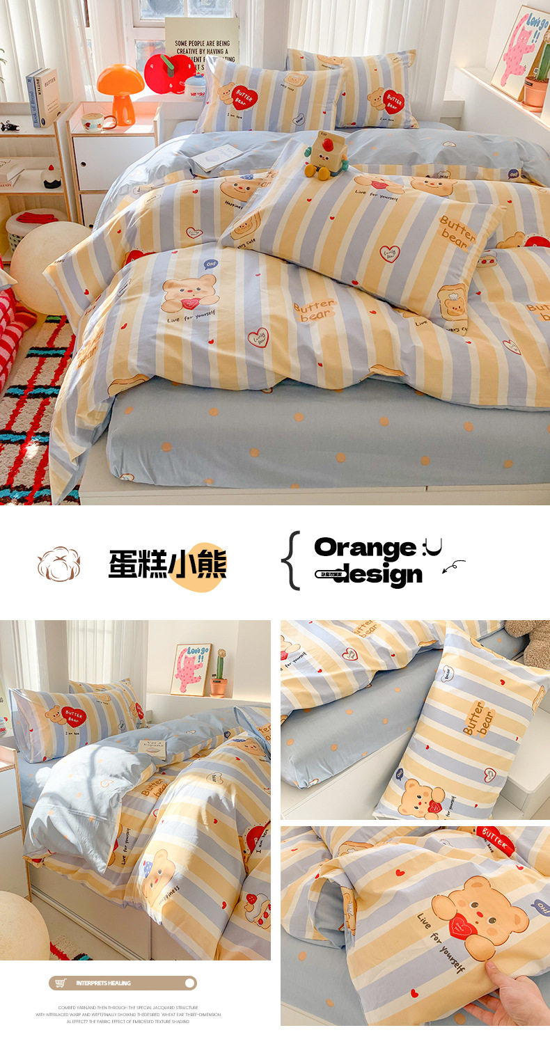 2025 Spring All-Cotton Four-Piece Set with Cartoon Print, Pure Cotton Bedding Set, Duvet Cover, Bed Sheet for 1.2m Bed, Three-Piece Set Wholesale