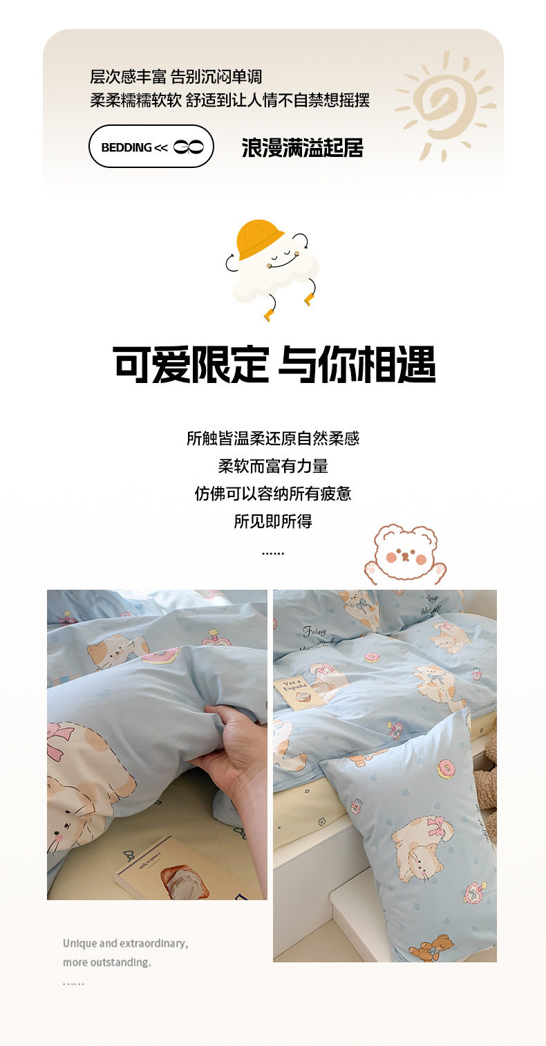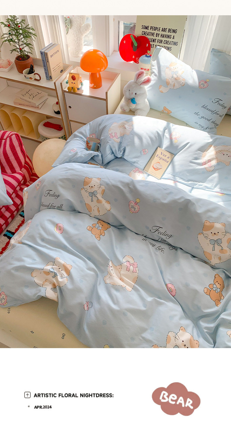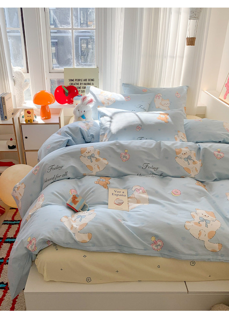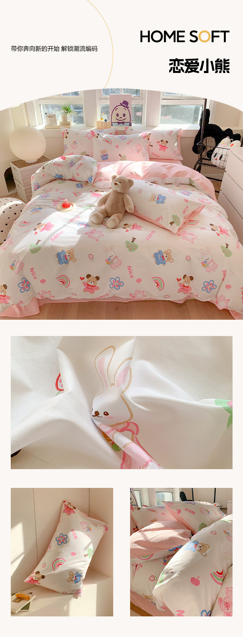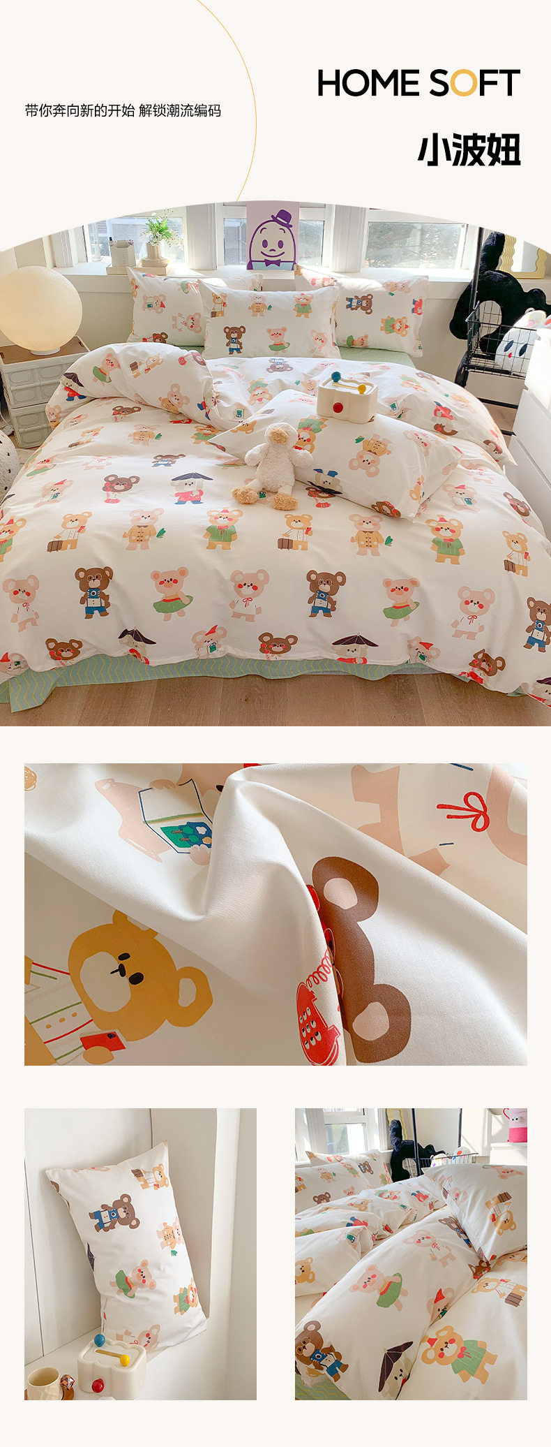 2025 Spring All-Cotton Four-Piece Set with Cartoon Print, Pure Cotton Bedding Set, Duvet Cover, Bed Sheet for 1.2m Bed, Three-Piece Set Wholesale
