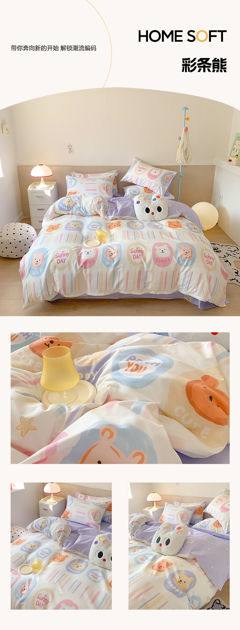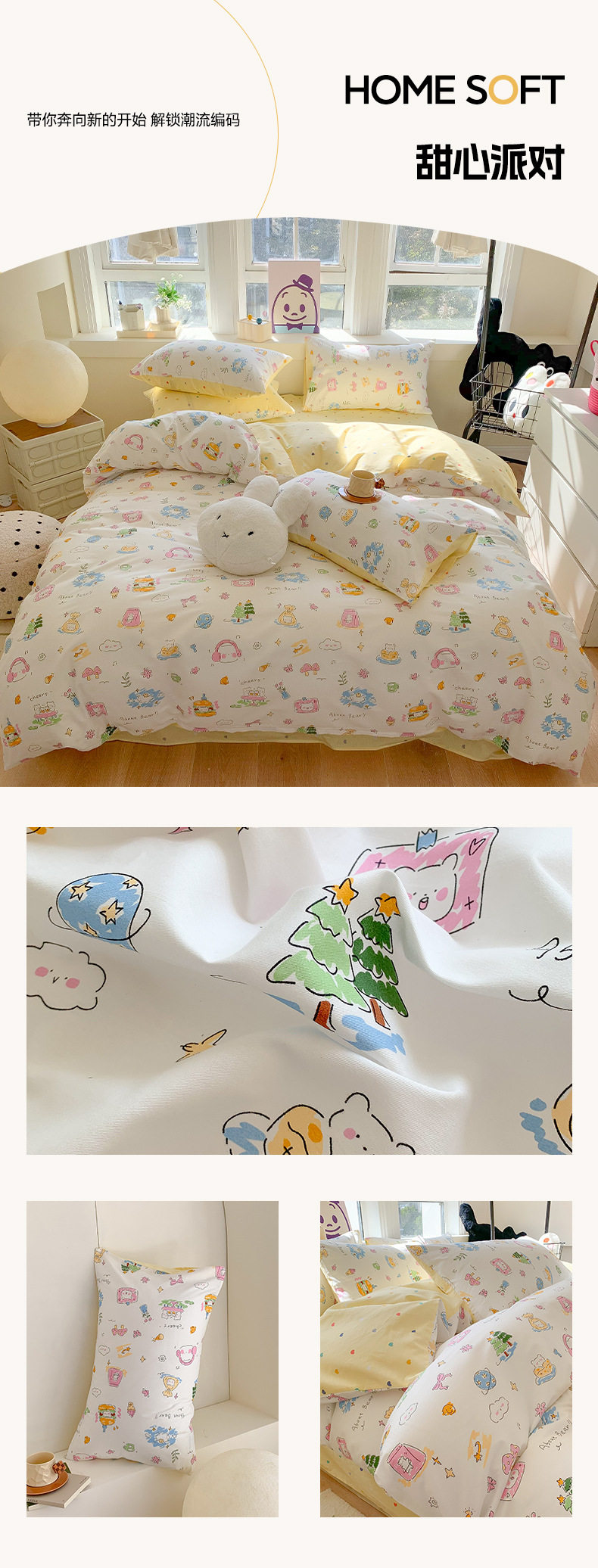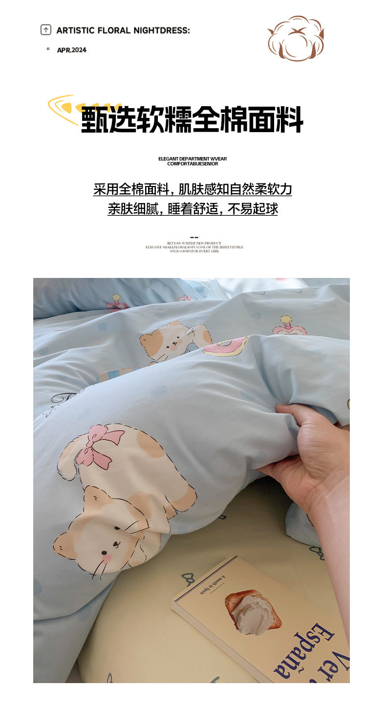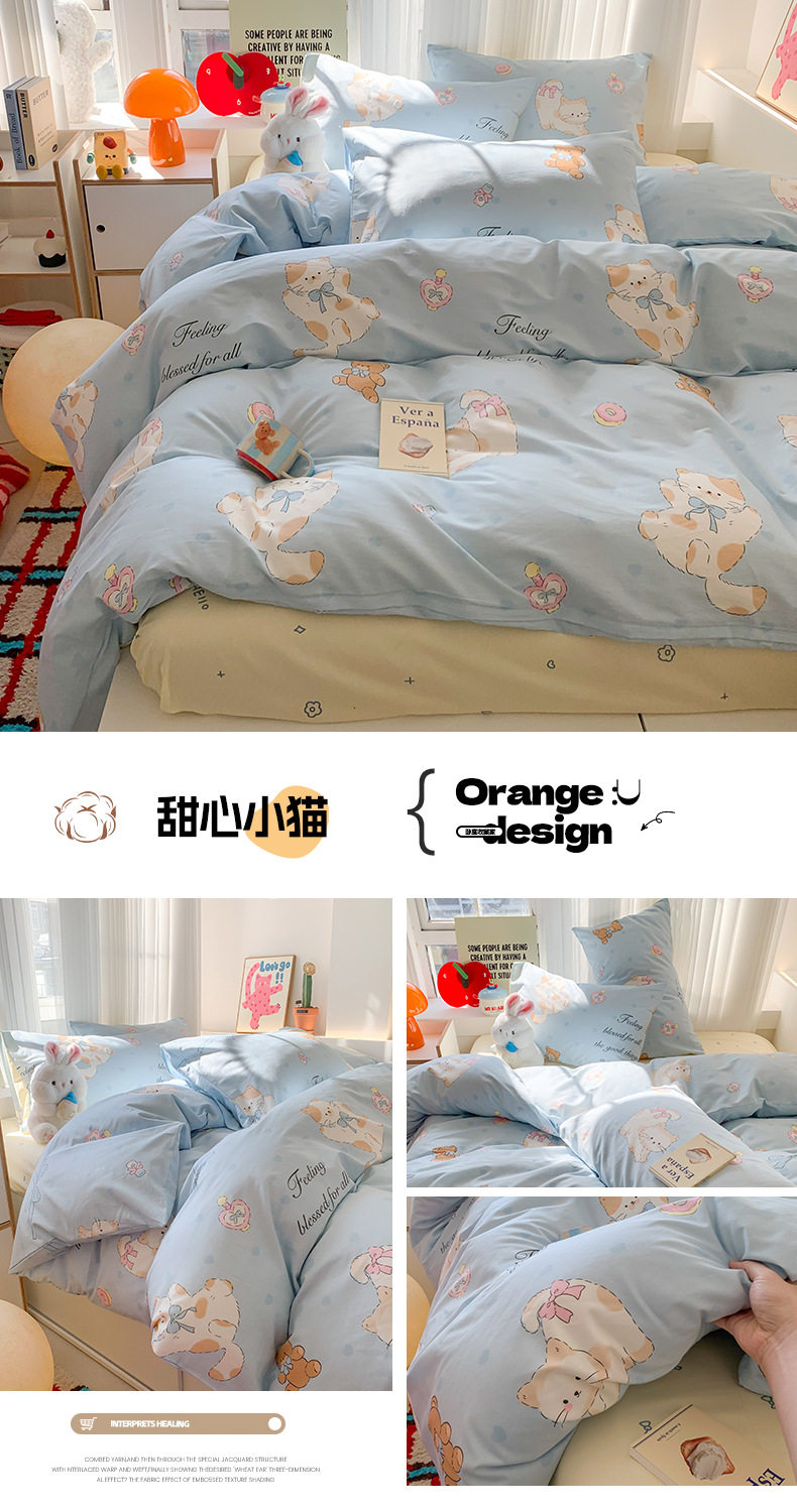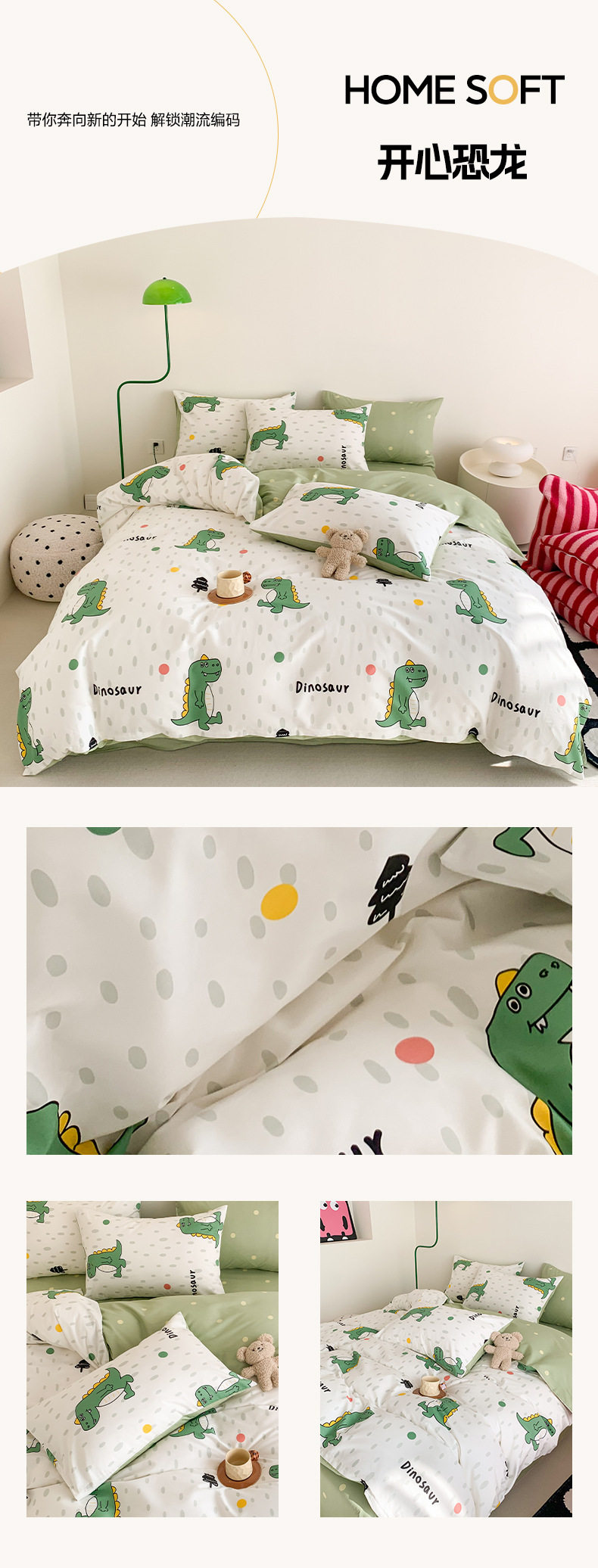 2025 Spring All-Cotton Four-Piece Set with Cartoon Print, Pure Cotton Bedding Set, Duvet Cover, Bed Sheet for 1.2m Bed, Three-Piece Set Wholesale